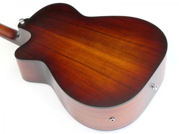ブラックウッド材トップ&サイド&バック、クイーンズランド・メイプル材ネック、縞エボニー材指板&駒、44mmナット幅、647.7mmスケール、そしてAP5-Proピックアップ・システムとなっております。
