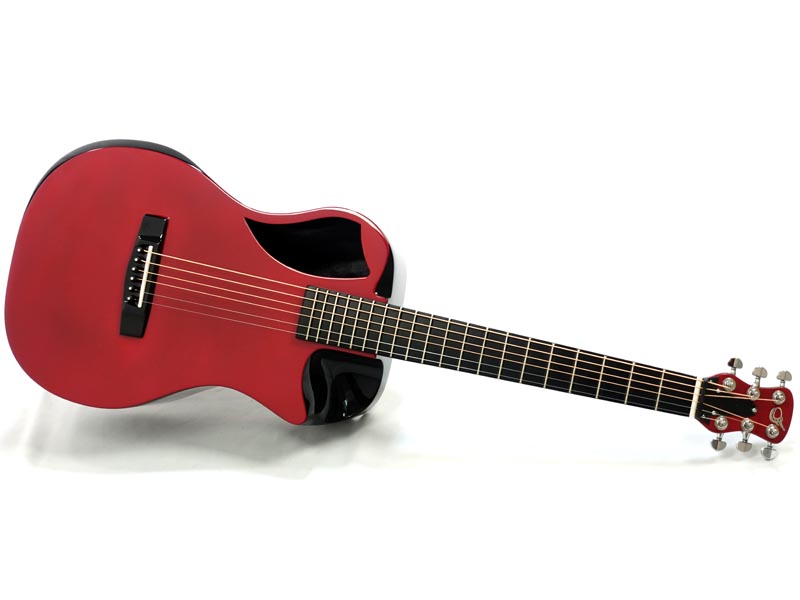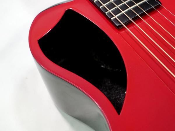 ミニギターに近い小振りで取り回しの良いサイズ感ながら、人間工学に基づいてデザインされた胴厚をアシンメトリーにしたボディによって長時間の演奏にも疲れにくく、サウンドもフルサイズのギターのように豊かに鳴ってくれます。少し本格的なご自宅用のミニギターとしても非常にお薦めです。独特の無機質なサウンドながらボディ鳴りはしっかりしており本物の木材に負けず劣らずの音質です。