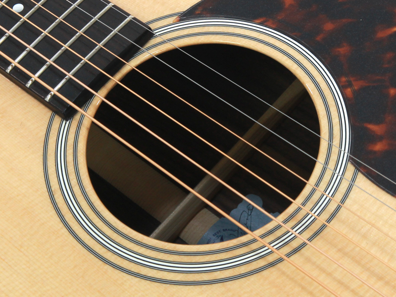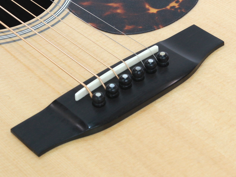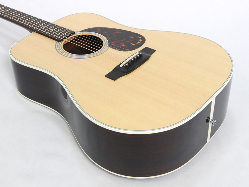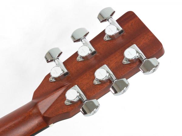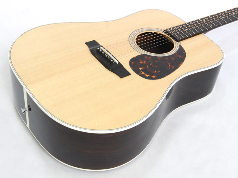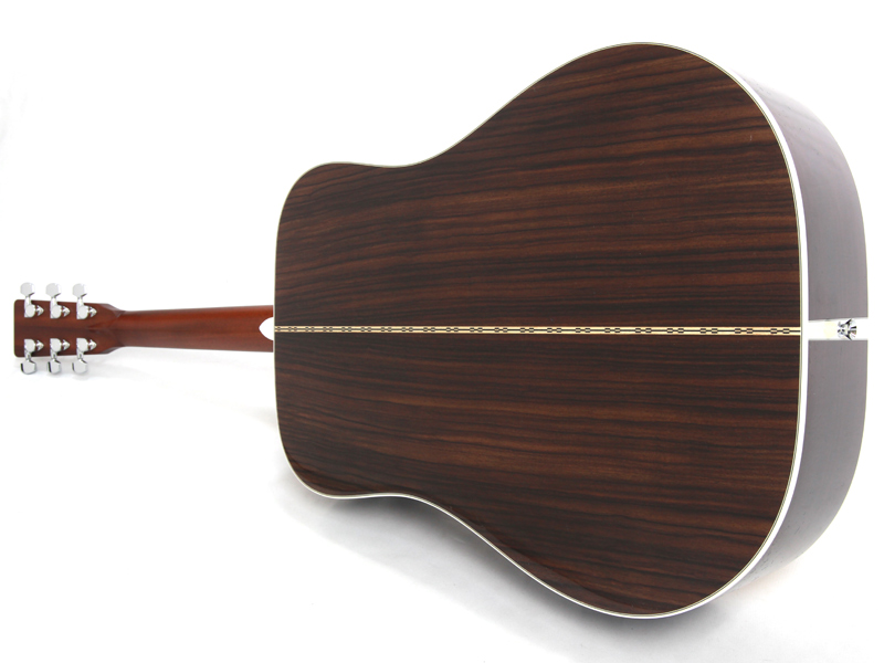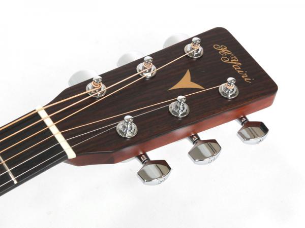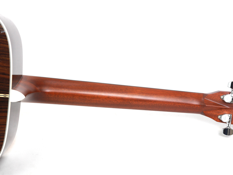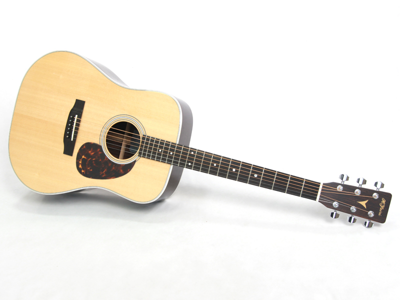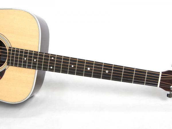 豊かな倍音が魅力のドレッドノートボディーを基に、スプルース材単板トップ、ローズウッド材単坂サイド&バック、マホガニー材ネック、エボニー材指板&駒、42mmナット幅、645mmスケールと、トラディショナルなマーチンスタイルです。