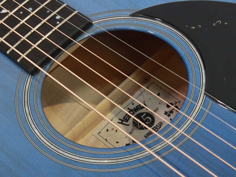 本器はHeadway45周年を記念して製作された2022年限定『夏桜』モデル。本年の夏桜モデルでは昨年からHeadway桜ギターのテーマとなっている、『和傘の女性』と夏のテーマを『水面と金魚』にイメージし『和』を感じるデザインと夏桜の象徴でもあるブルーのカラーリングを細かく調整し、夏の池の青さを連想させるような鮮やかながら深みもあるブルー、『サマーグラデーション』に仕上げております。