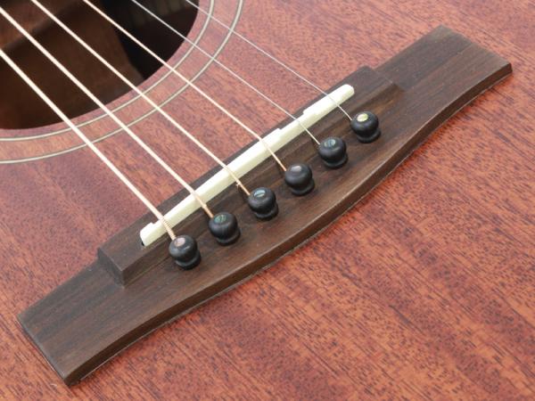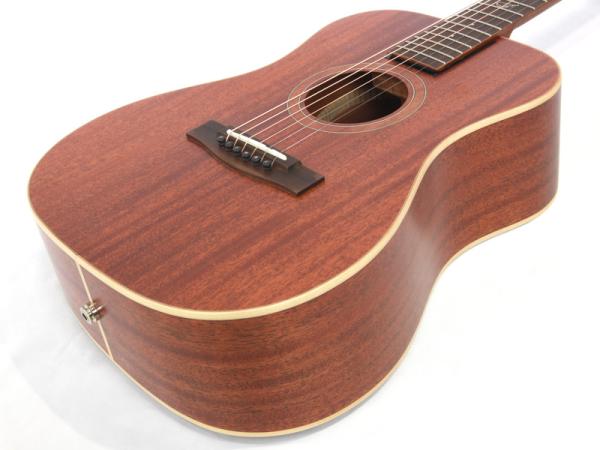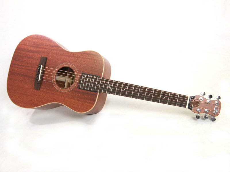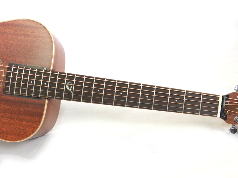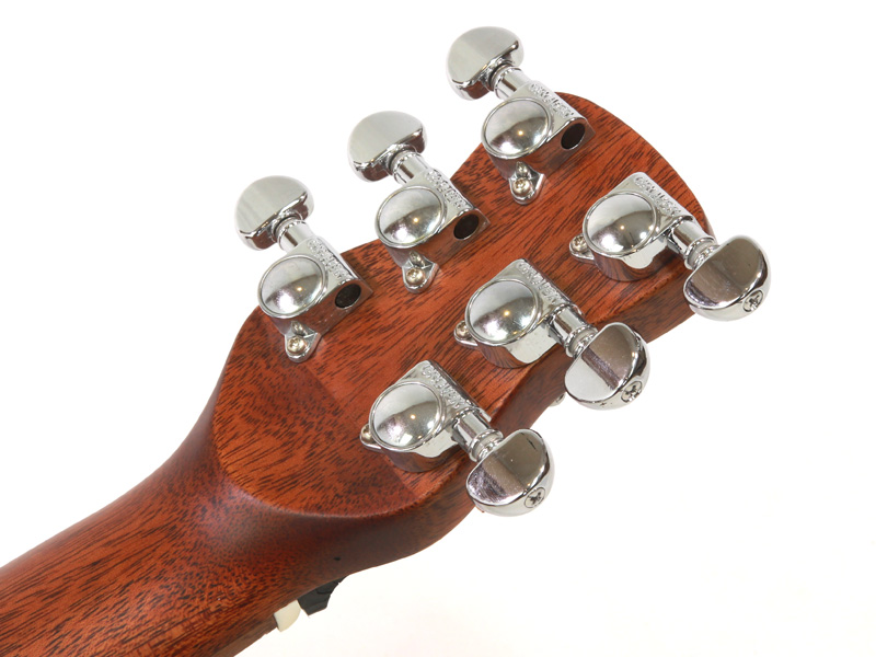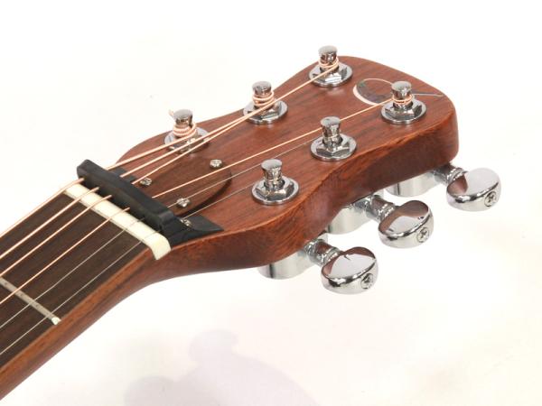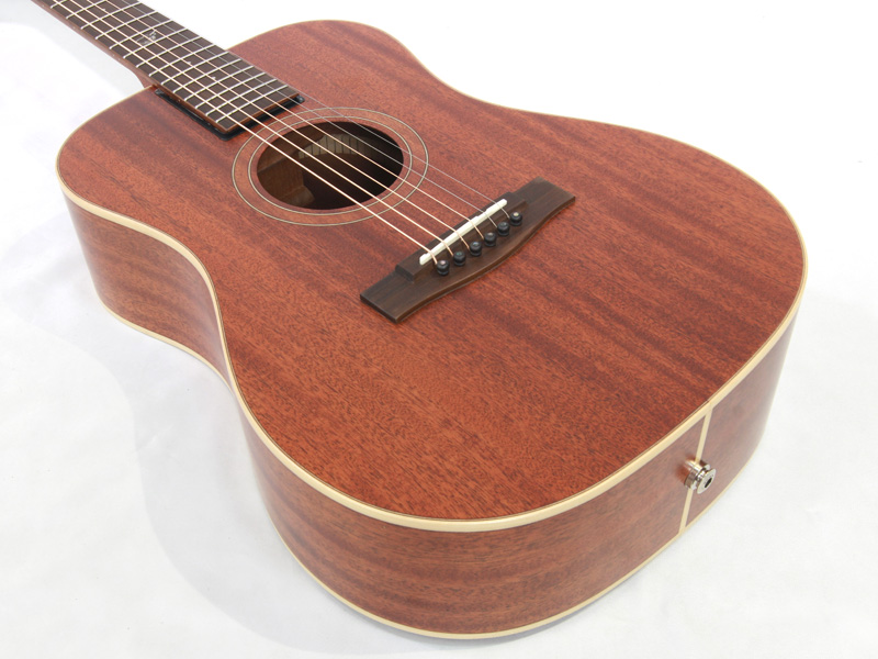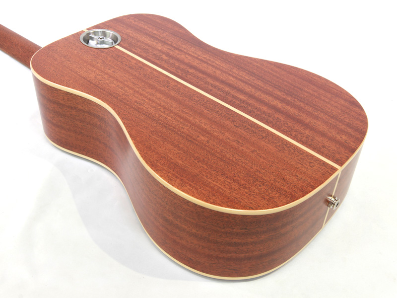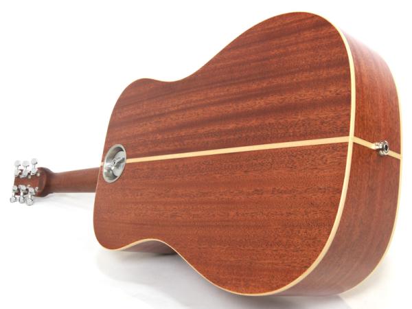 アフリカンマホガニー材単板トップとアフリカンマホガニー単板サイド/バックの仕様で、ギブソンスケールに近い622.3mmスケール、フィンガーピッカーにも弾きやすい44.5mmナット幅の仕様。オヴァンコール材指板&ブリッジにカーボンファイバー補強と効きの良い2wayアジャスタブルロッドが仕込まれたアフリカンマホガニー材ネックと、強度とサウンドに拘った本格的なスペックが魅力となっております。