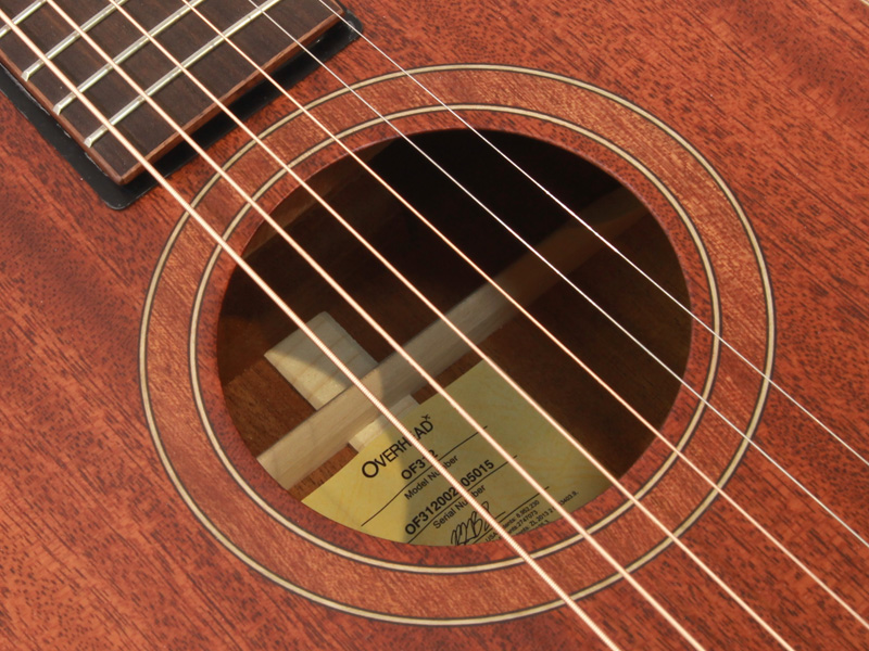 ○トップ:アフリカンマホガニー単板にアフリカンマホガニーのロゼッタ加工、テーパード加工のXブレーシング