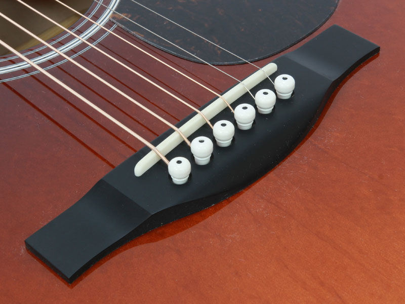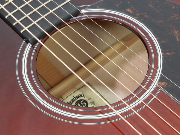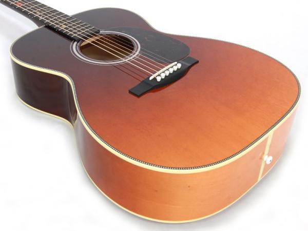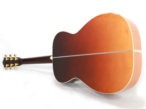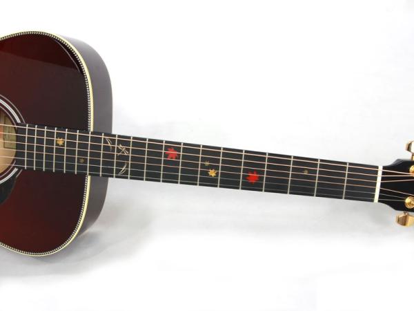 サイド&バック材にはテーマを彩る希少なカエデ材を使用。サウンド的には非常にすっきりとした扱いやすい音色で、タイトながらも硬さを感じさせない豊かな生鳴りが特徴的。ストローク弾きでの歌モノのバックなどには非常に相性が良く、小振りで抱えやすいながらもしっかりとした音量があります。