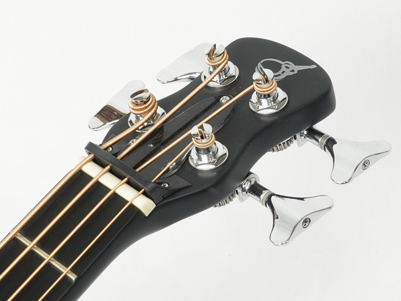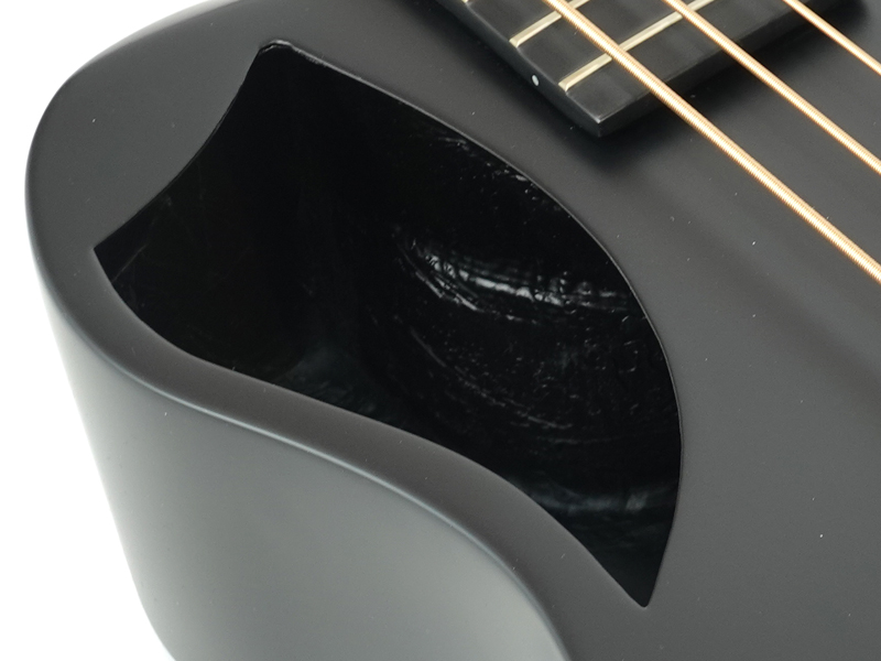 ミニギターに近い小振りで取り回しの良いサイズ感ながら、人間工学に基づいてデザインされた胴厚をアシンメトリーにしたボディによって長時間の演奏にも疲れにくく、サウンドもフルサイズのように豊かに鳴ってくれます。少し本格的なご自宅用のミニベースとしても非常にお薦めです。独特の無機質なサウンドながらボディ鳴りはしっかりしており本物の木材に負けず劣らずの音質です。