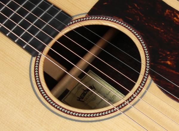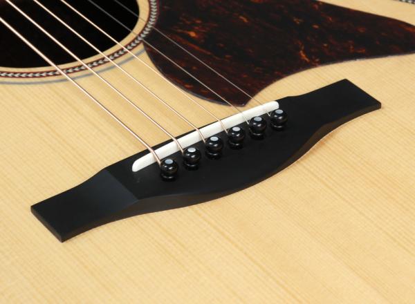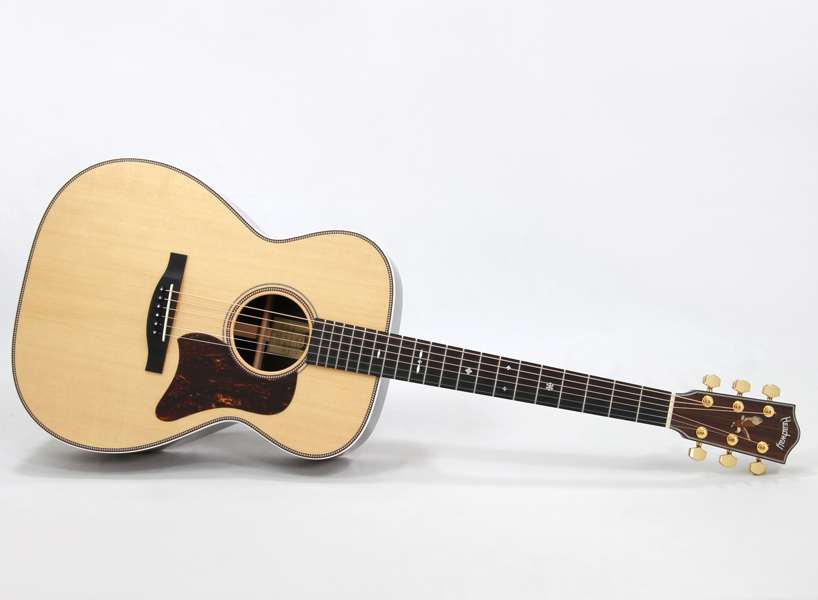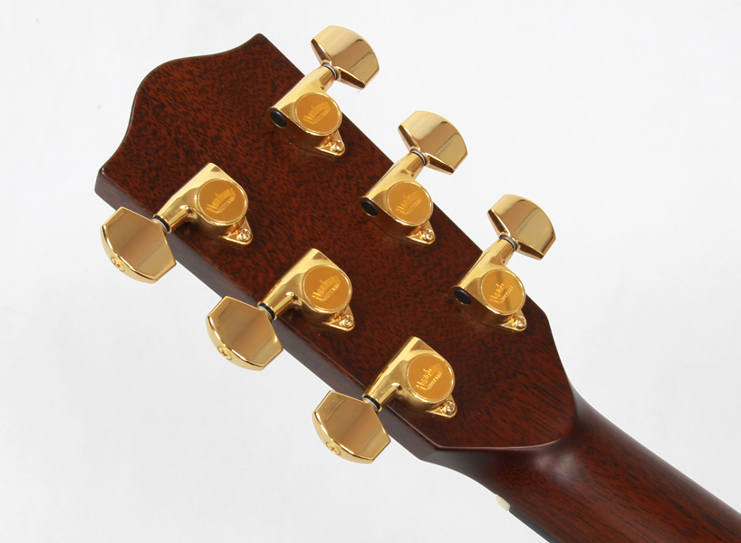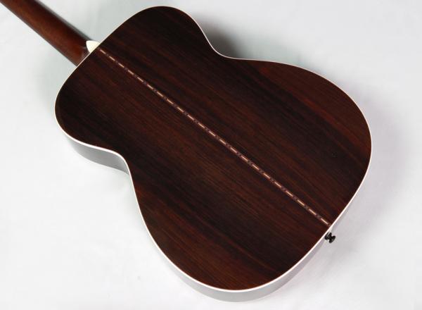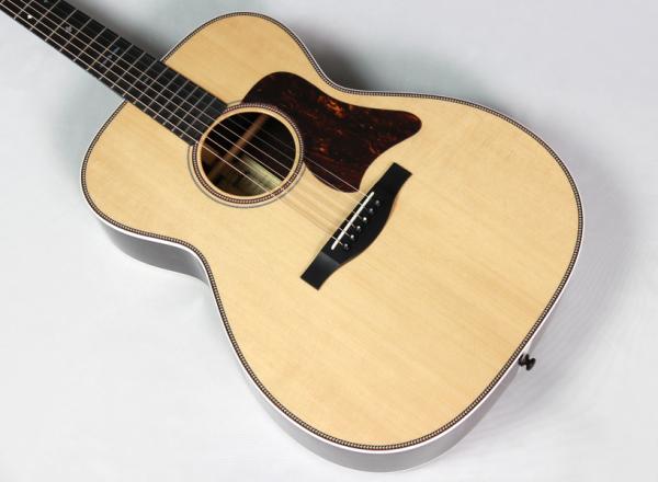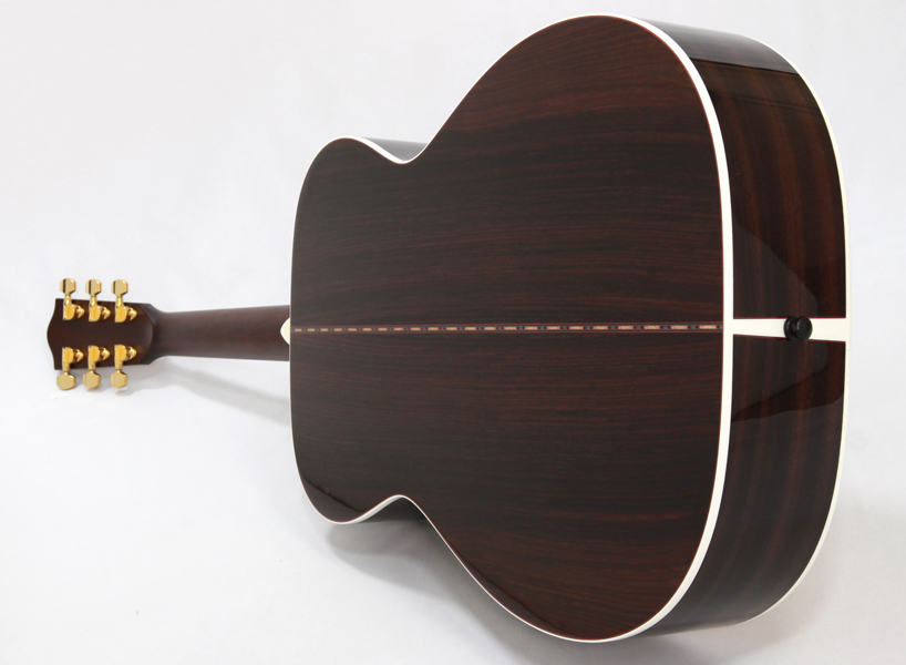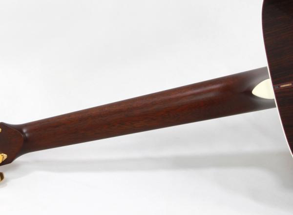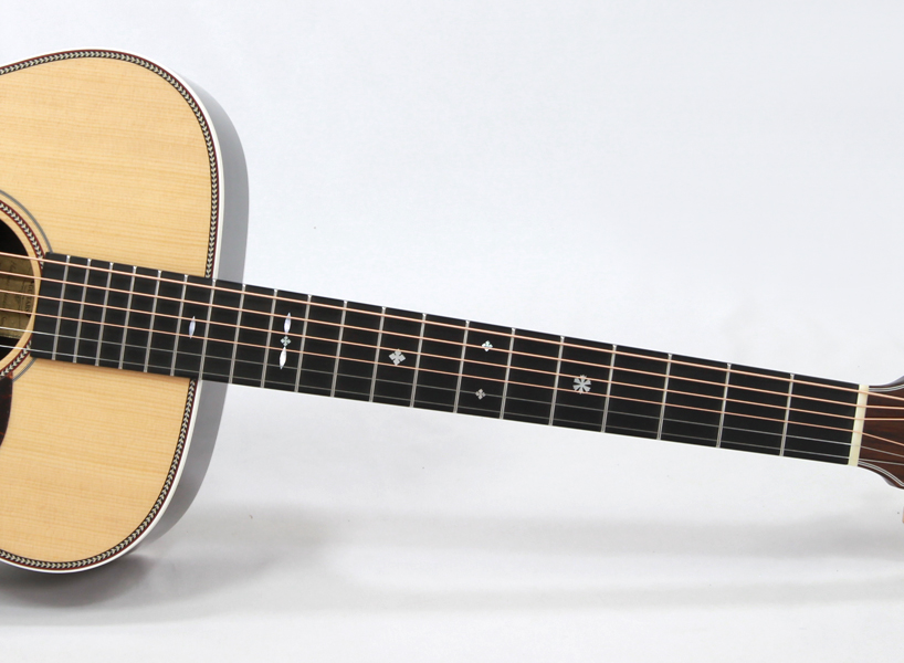 トップ材はシトカスプルースの単板、サイド&バック材はインディアンローズウッドの単板と言ったオール単板仕様の本格派ギター。ネック材はアフリカンマホガニーの1ピース、ブラックリッチライト材指板&ブリッジ、43mmナット幅に628mmスケールとコンパクトで抱えやすいギターです。