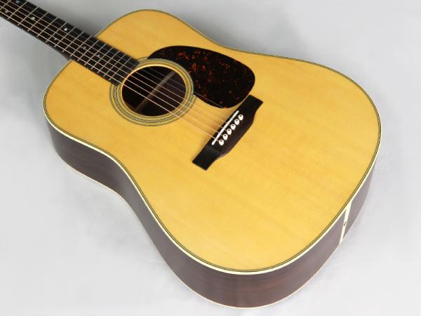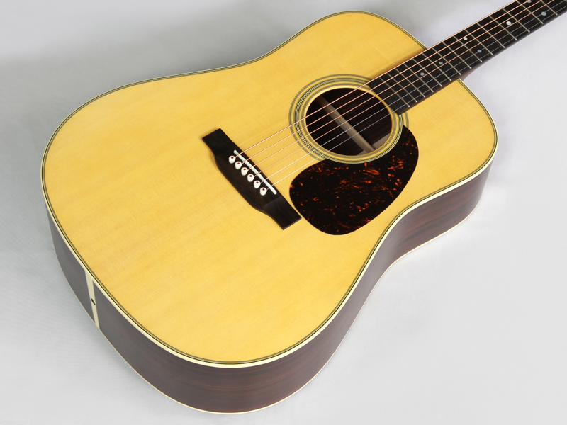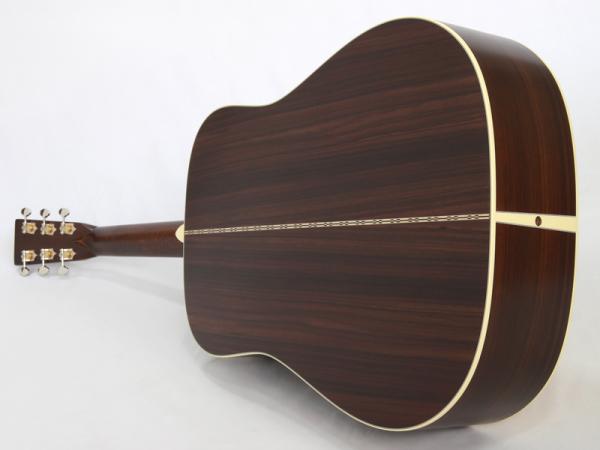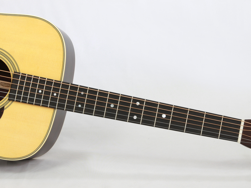 シトカスプルース材TOP、インディアンローズウッド材SIDE&BACK、セレクトハードウッド材ネック、エボニー材指板&ブリッジ、44.5mmナット幅、645mmスケール、オープン・ギア・チューナー、エージング・トナー・トップ、アンティーク・ホワイトのバインディング、べっ甲柄のピックガードなど、塗装の仕上げ以外はD-28 STANDARDとすべて同じ仕様となっております。