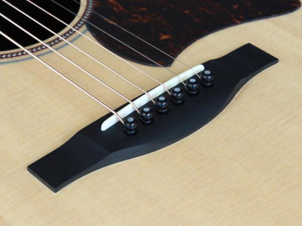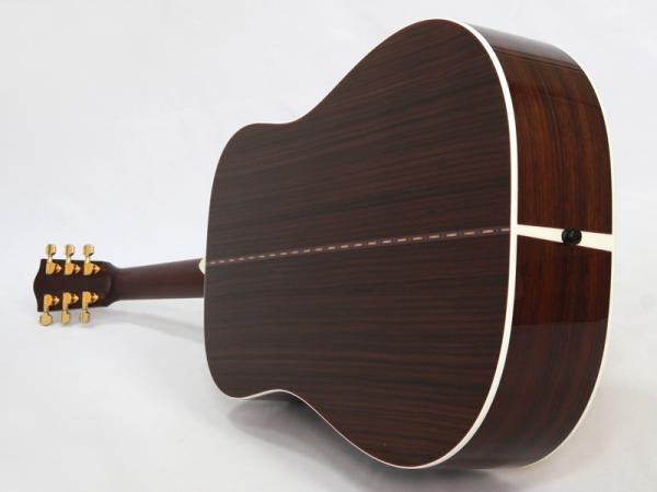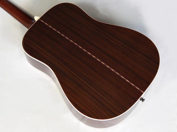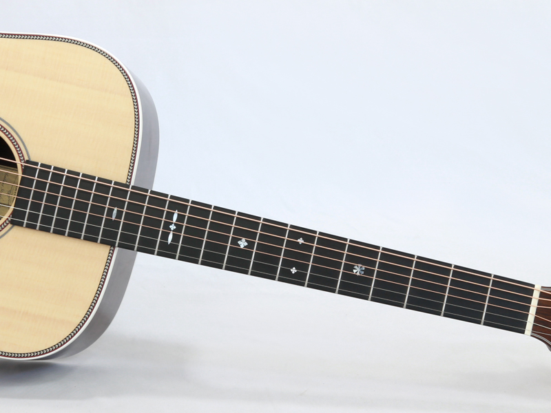 トップ材はシトカスプルースの単板、サイド&バック材はインディアンローズウッドの単板と言ったオール単板仕様の本格派ギター。ネック材はアフリカンマホガニーの1ピース、ブラックリッチライト材指板&ブリッジ、43mmナット幅に645mmスケールと豊かな生音とボリューム感を持ったモデルです。