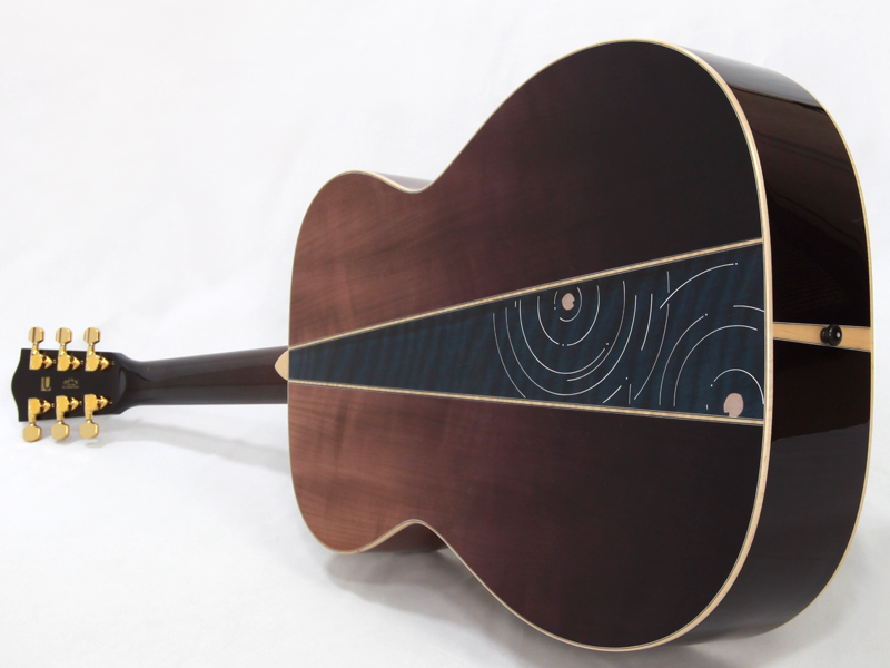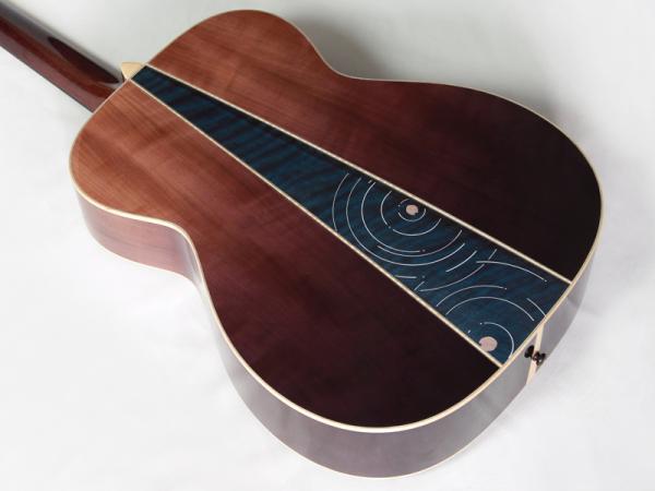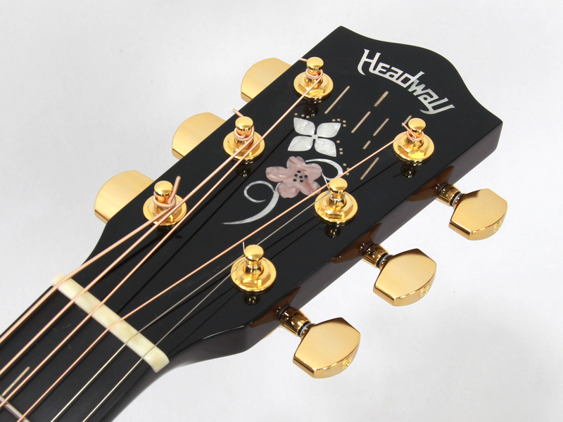 ボディトップには今回のHeadway ATB Seriesで展開されている「和材コレクション」のメインテーマである、黒蝦夷松-Black Ezo Spruce-を使用。その名の通り北海道に自生するトウヒ属の木で、その木質はカスタムショップビルダーの安井、降幡の両名が「アディロンダックスプルースに近くダイナミックなサウンドを奏でる。」と太鼓判を押した極上の木材です。