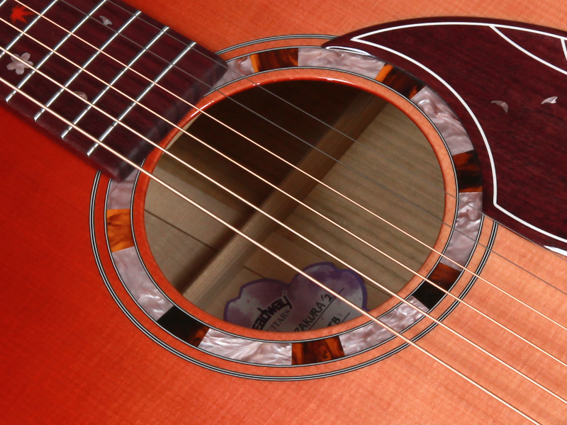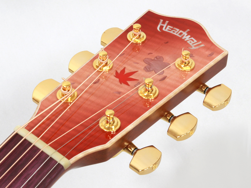 本器は15本限定生産の限定モデル"四季桜"。この四季桜モデルは2021年から制作をはじめて今年で3年目。毎年少数限定生産ですのですぐに売り切れてしまうHeadwayの限定モデルの中でも人気のあるギターです。