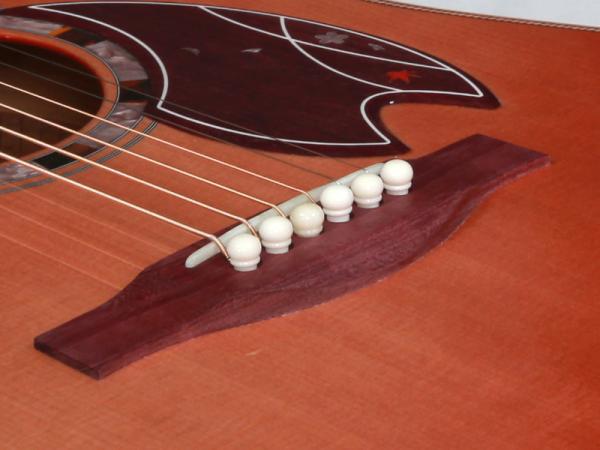 トップ材には厳選されたシトカスプルースを採用。サウンドにしっかりとした迫力を与え、低域を適度に引き締めることで暴れにくく扱いやすい音色に整えております。