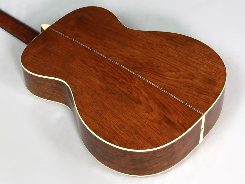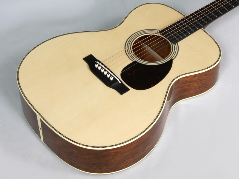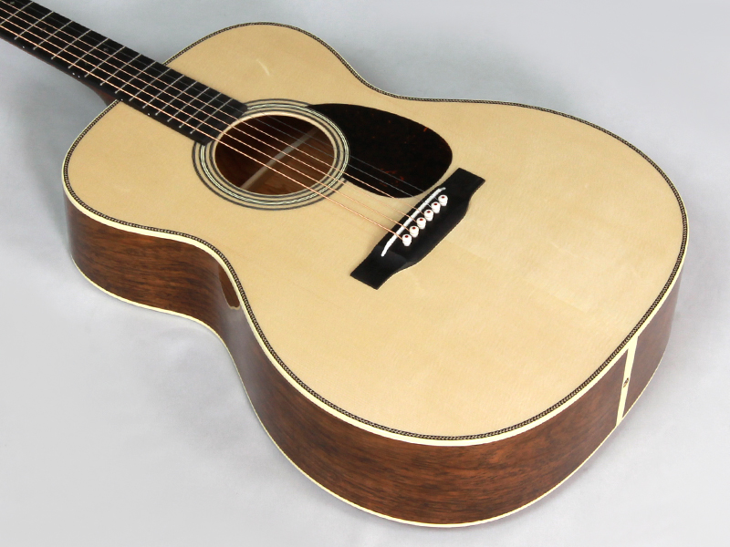 本器は当店で人気NO.1のOM-28をカスタムベースに、トップ材にイタリアンアルパイン・スプルース、サイド&バック材にはグアテマランローズウッドを合わせたカスタムモデルです。