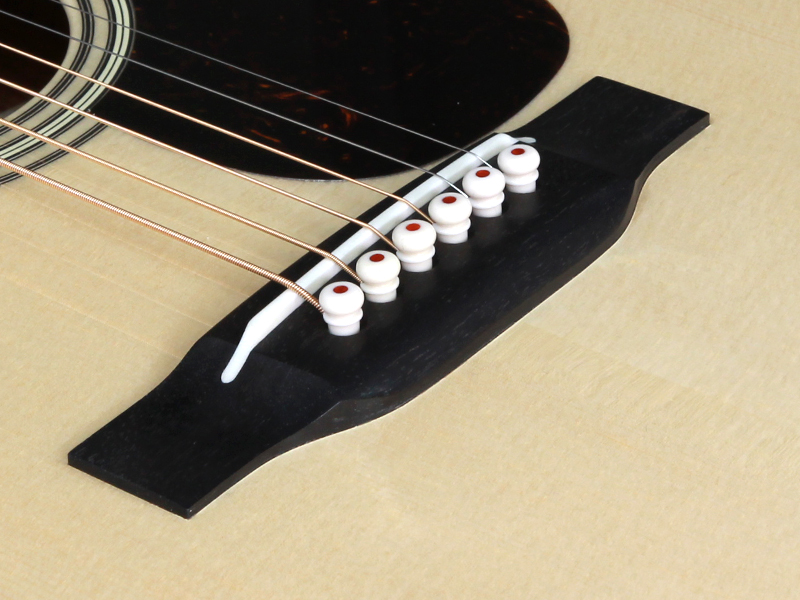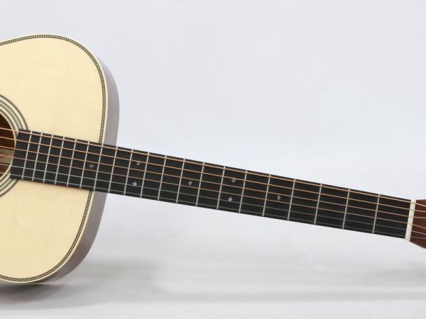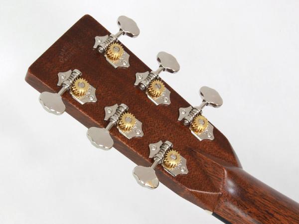 その他スペックとして、エボニー材指板&駒、アディロンダックスプルース材ブレイシング(スキャロップド)、マホガニー材ネック、ナット幅は44.5mm、ヘッド裏スタンプ、Groverオープンバックペグとなります。