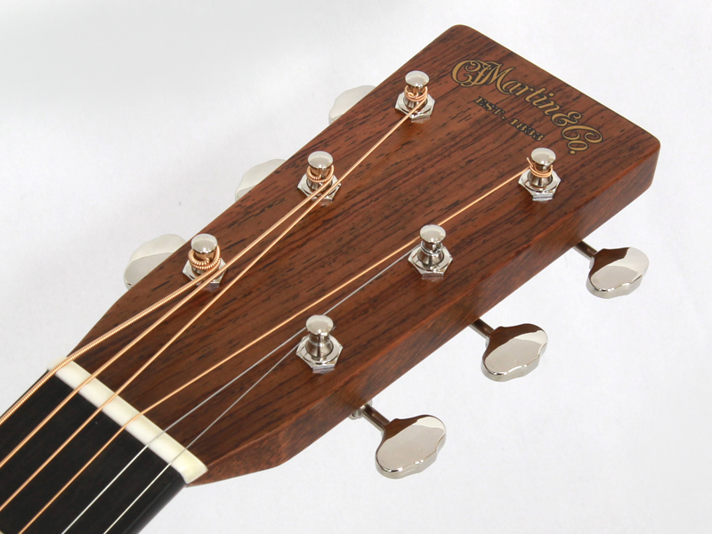 サイド&バックのグアテマラ・ローズウッドは近年のマーチンのハイエンドモデルでは主力の木材。しっかりと硬質でクリスタルな鳴りをしており、適度に軽量でローエンドに音がより過ぎず、非常にバランスの良いローズウッド。サウンドの傾向はややすっきりとしたブラジリアンローズのようなトーンを持っており、反応の良い万能な音色となっております。