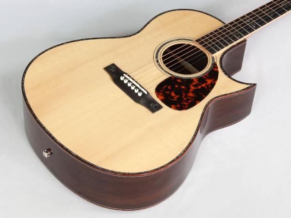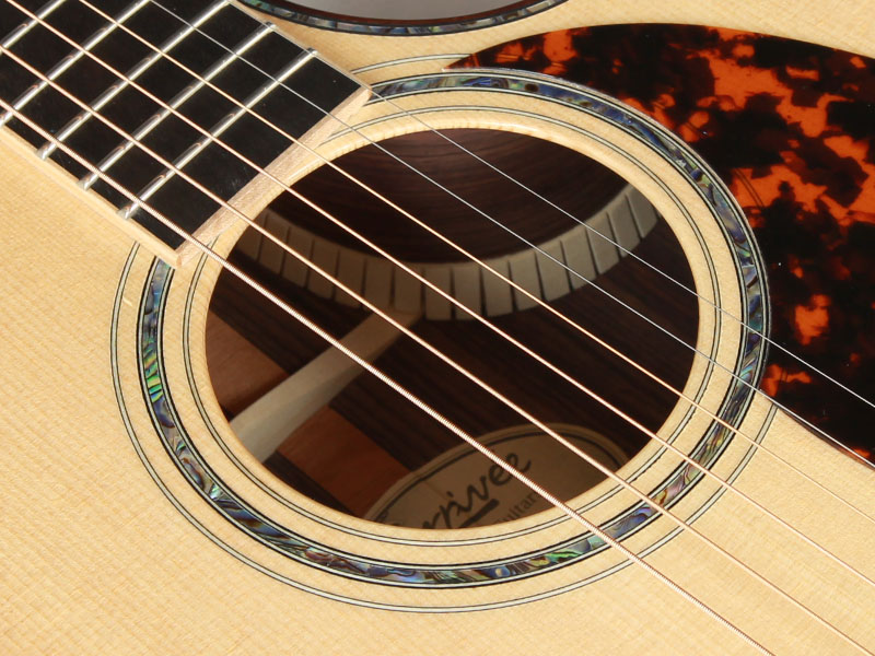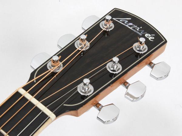 ボディ材は全てマスターグレードの単板でトップ材にはシトカ・スプルース、サイド&バック材はインディアンローズウッド。 Larriveeの特徴でもあるシンメトリカル・パラボリックXブレーシングとダブテイル・ジョイントされた1ピース・マホガニーのネックやアフリカン・ エボニーのブリッジ&フレットボードを採用し、ラリビーらしい非常にバランスの良いトーンを兼ね備えています。