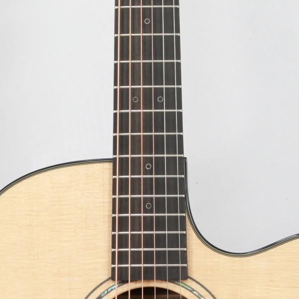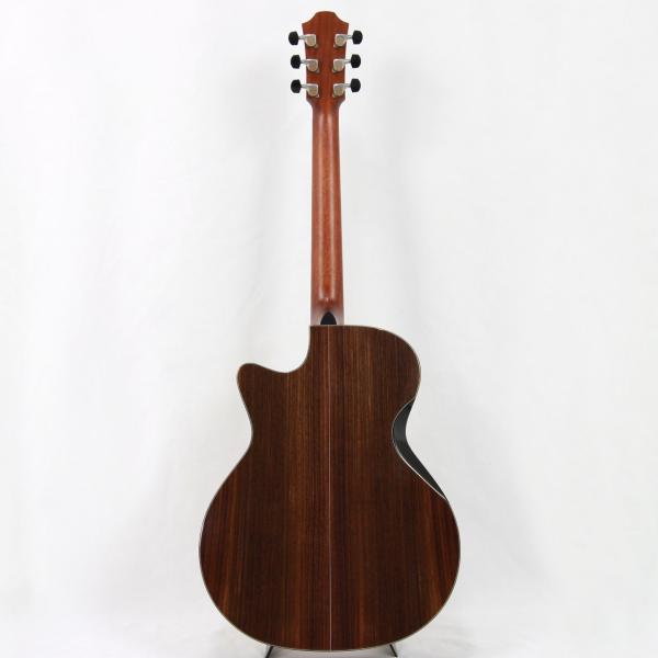 豊かな生鳴りを楽しめるグランド・オーディトリウムのボディを元に、トップ材は定番のシトカスプルース、サイド&バック材はインディアンローズウッドを採用し、新仕様のBevel Duoが施されております(コンターの素材は人工素材となります)。その他スペックは、マホガニー材ネック、エボニー材指板&ブリッジ、ナット幅は45mm、GOTOH 510ペグの仕様となっております。
