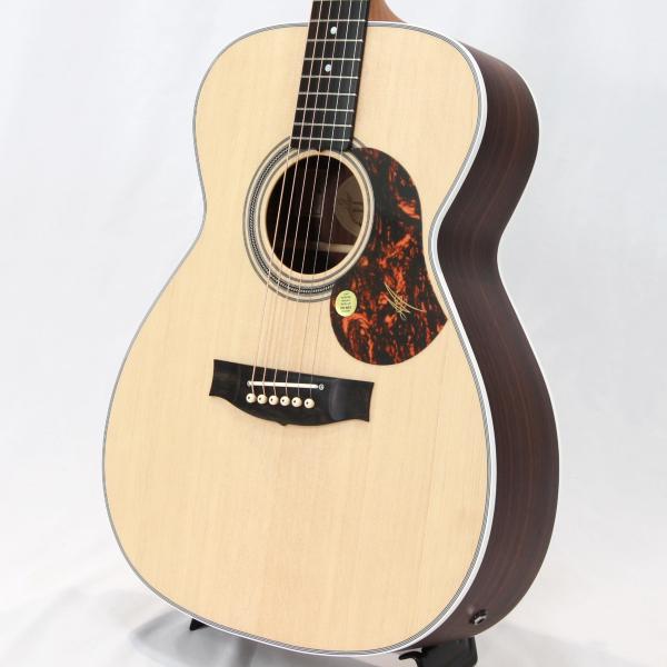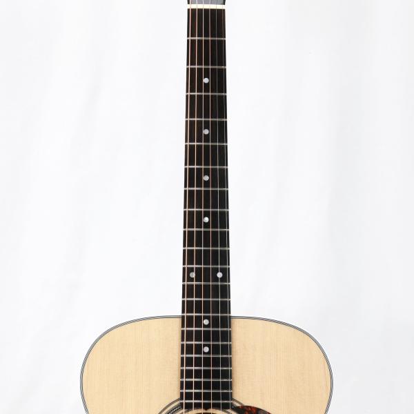 懐にちょうど収まる抱えやすいボディで、808シェイプの深胴が苦手だった方にもお薦めしたい演奏性に優れたモデルです。スプルースとインドローズの組み合わせで、豊かなローエンドが効いた美しいサスティーンが魅力で、バラード演奏を主体とするフィンガーピッカーにも最適な音色となっております。良い意味で皆がイメージしやすいアコースティックギターの音色で、非常に扱いやすい1本だと思います。