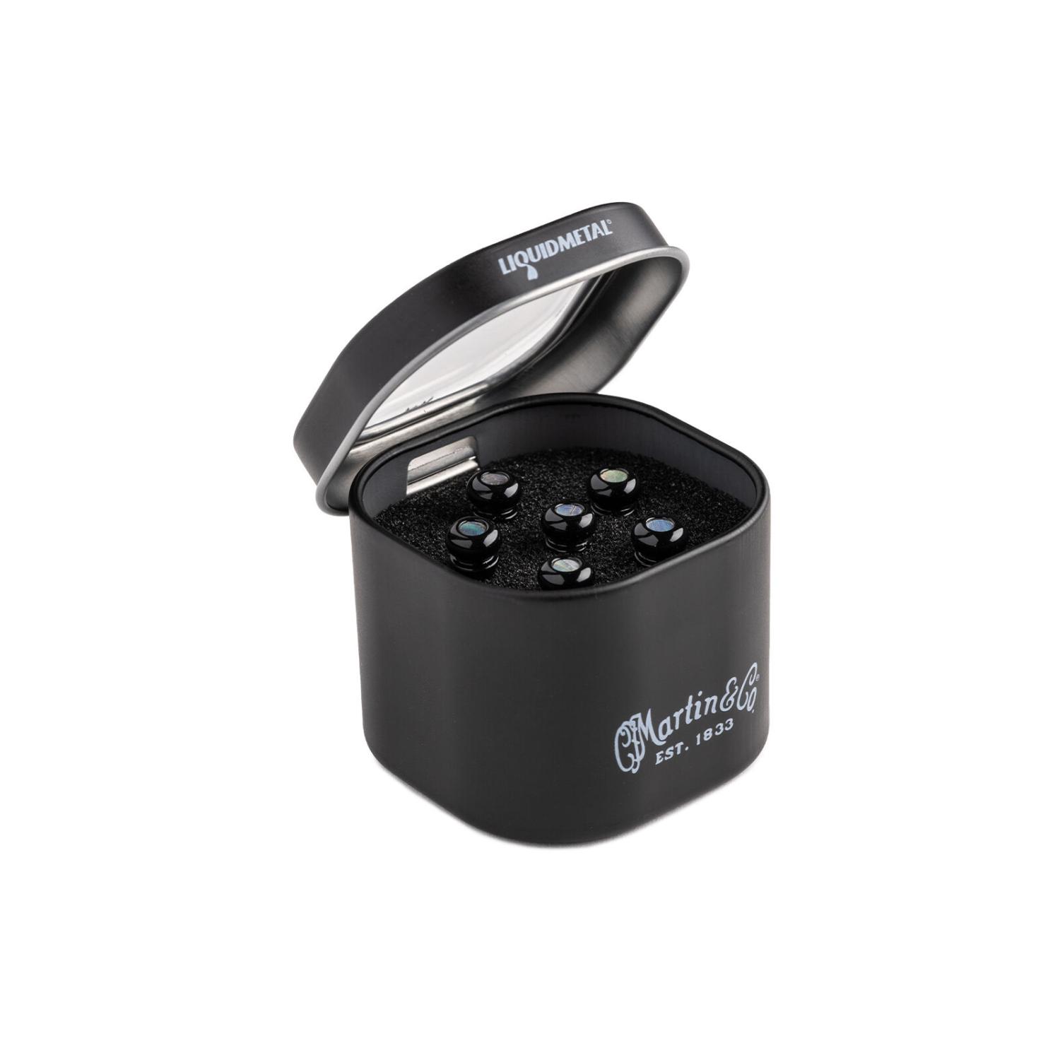 Martin マーチン LiquidMetal LUXE BY MARTIN Bridge Pins (Gloss Black With Pearl)118APP0015話題のリキッドメタルブリッジピン。シックな艶有のブラックカラーに美しいパウア貝のドットインレイを施したモデル。 ![]()