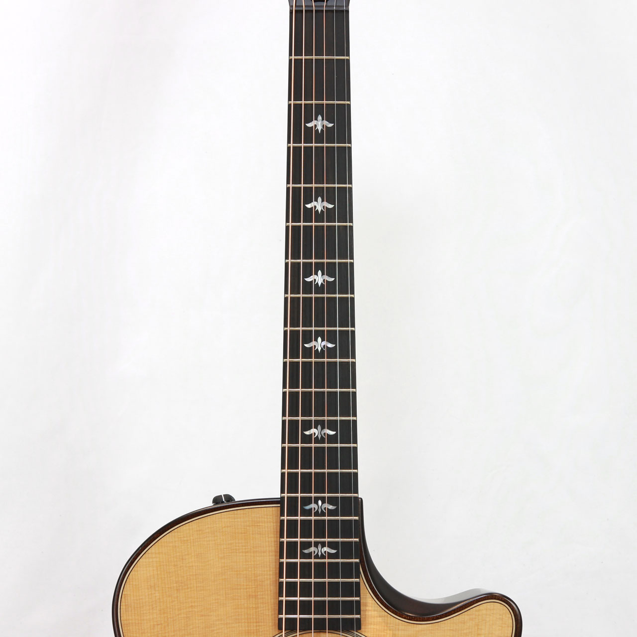 トップ材にはトリファイド加工が施されたシトカスプルース、サイドバック材はビッグリーフ・メイプルの組み合わせ。ネック材にもビッグリーフ・メイプル材を用いており、V-Classブレーシングにより、音量が増し、サスティーンも長く全体的に整ったサウンドに仕上がりつつも、明瞭で抜けの良いサウンドを獲得しております。