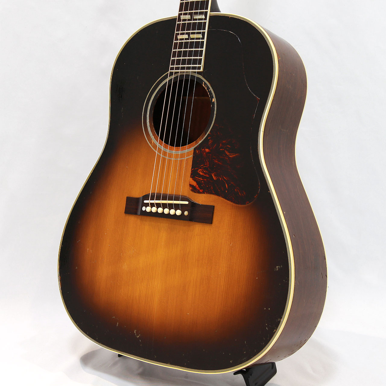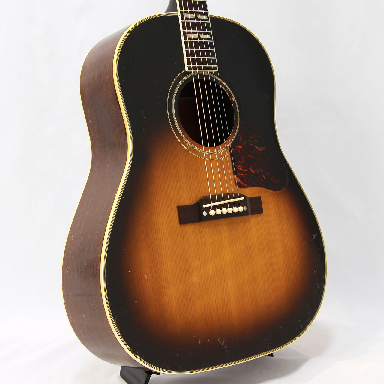 本器は1955年製で、ツーリングのロゼッタにラージピックガード、スキャロップ・ブレーシング仕様の個体。この年代のSJは出物が少なくなってきており、年々高騰し続けている人気のモデルとなります。