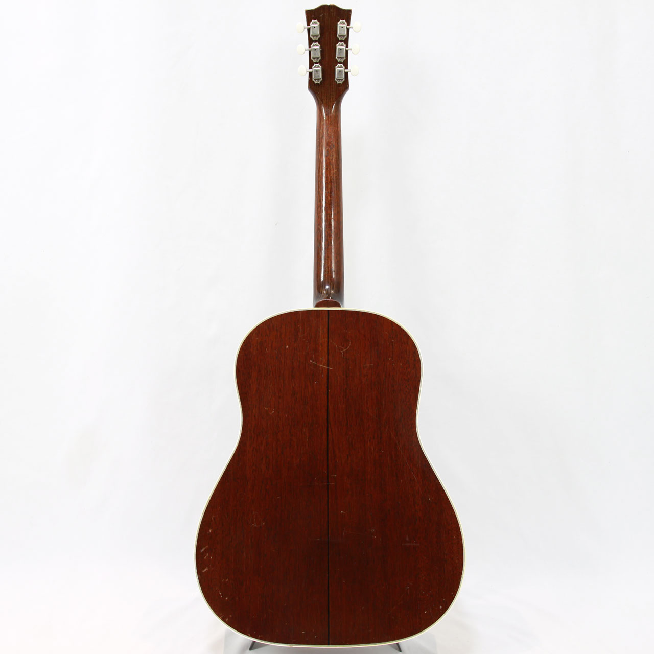 鳴りは非常に良く、全体的に乾いた立ち上がりの早いこれぞヴィンテージGibsonといった音色。ヴィンテージギターらしい乾いた淀みのない豊かな胴鳴りと開放的で豊かなボリューム感を感じられるかなり音の良い個体です。ピッキングへの反応も非常に良く、ストロークでのバランス感や纏まりもありますので、ストレスなく好フィーリングに演奏できる個体となっております。