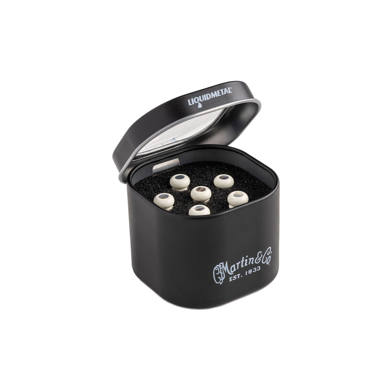 LUXE BY MARTIN™ブリッジピンは、ギターの音色と演奏性を常に改善するというMartin社の拘りによって産み出されました。 これらのハイテクピンは、ジルコニウム合金であるLiquidmetal®で作られており、エネルギーを吸収せず反射させます。 その結果、ギターのトーンのローエンドまたは豊かさを犠牲にすることなく、ボリュームとサステインが増加。 非常に耐久性もあり、現在市場に出回っているほとんどのブリッジピンよりも長持ちします。