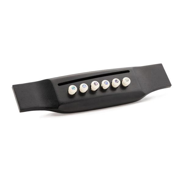 話題のリキッドメタルブリッジピン。見慣れた牛骨のカラーに美しいパウア貝のドットインレイを施したモデル。