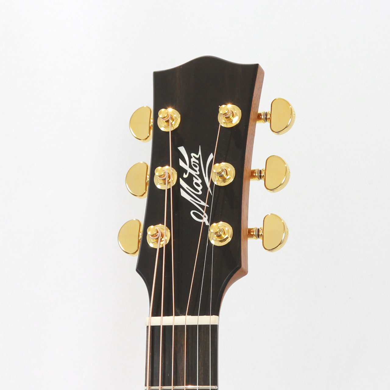 本器はCustom Shopで開発されたメイトンギターの新ボディシェイプ"Traditional"を用いた初のレギュラーラインナップモデルの「ER90 Traditional」。Martinで言う000ボディに647mmスケールを採用したOMスタイルとなっており、808より薄胴で抱えやすさが有りながらも、十分な低域と煌びやかな高域、さらに圧倒的な音抜けを実現した大変お薦めの新モデルです。