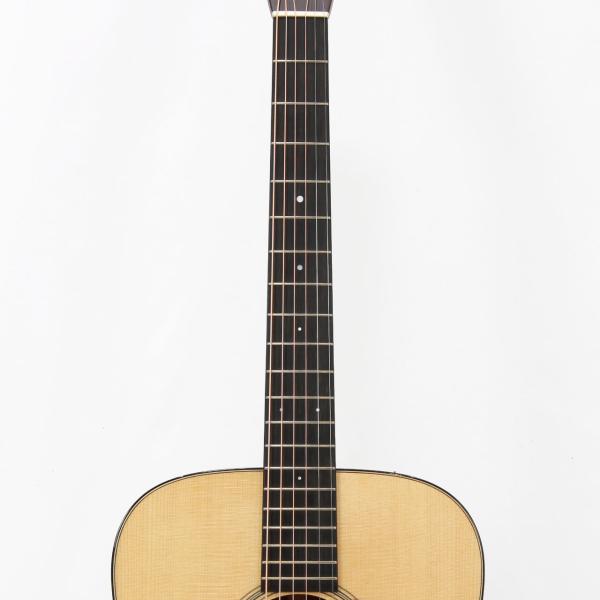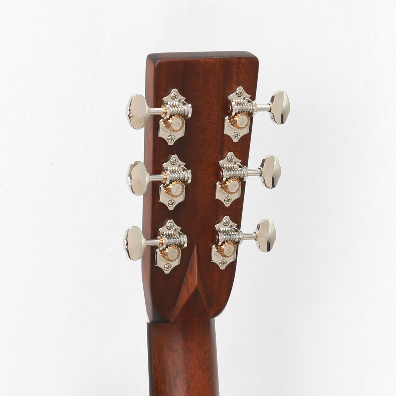 大容量のDボディに、トップ材には厳選されたシトカスプルース、サイド&バック材にも選りすぐりのマホガニーを使用し、ホンジュラスマホガニー材ネック、エボニー材指板&ブリッジ、44.5mmナット幅、647.7mmスケール、エボニー材ブリッジピン、ジリコテ材による天神突板、シャーラー社のGrand Tuneペグと、妥協のないハイスペックな仕様となります。