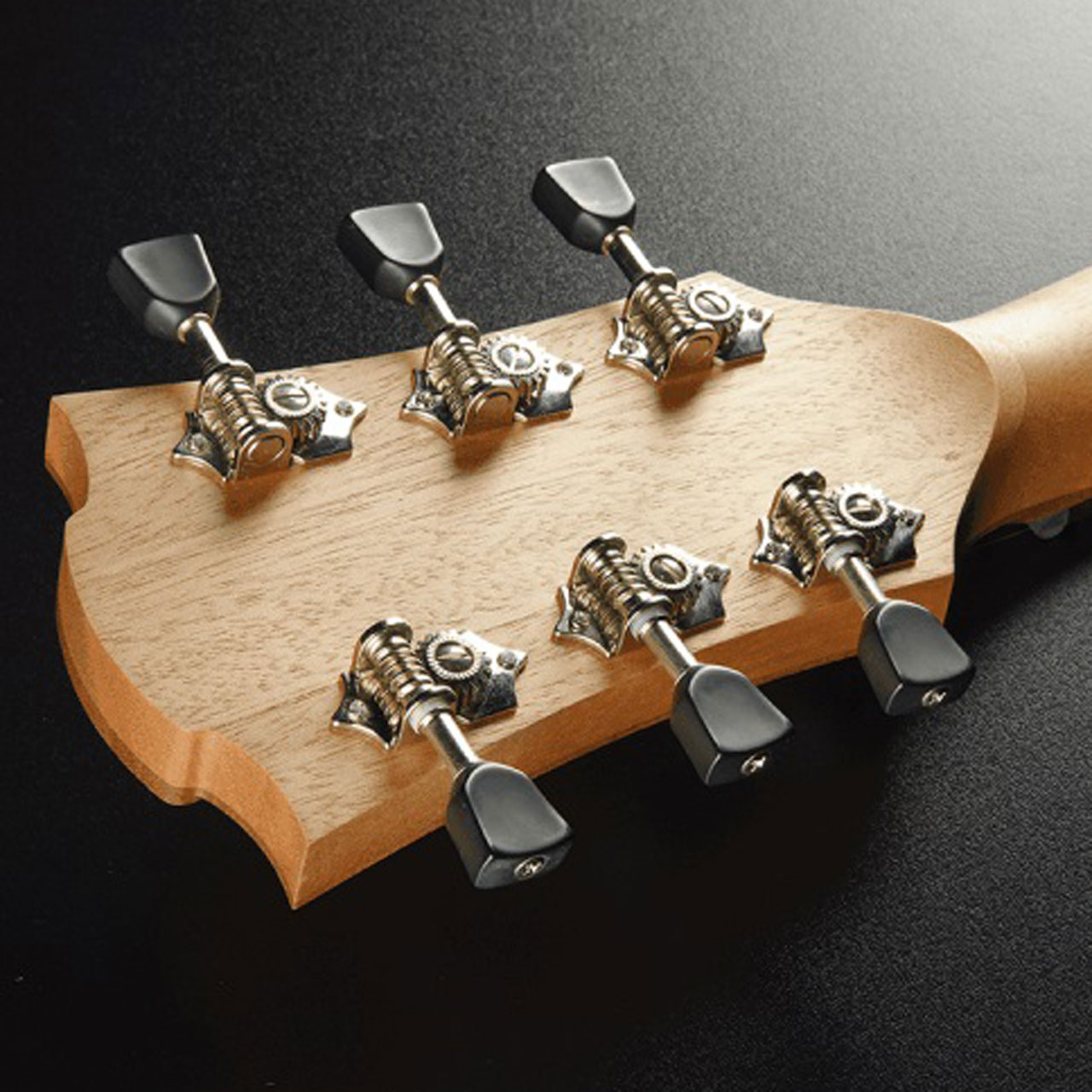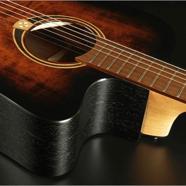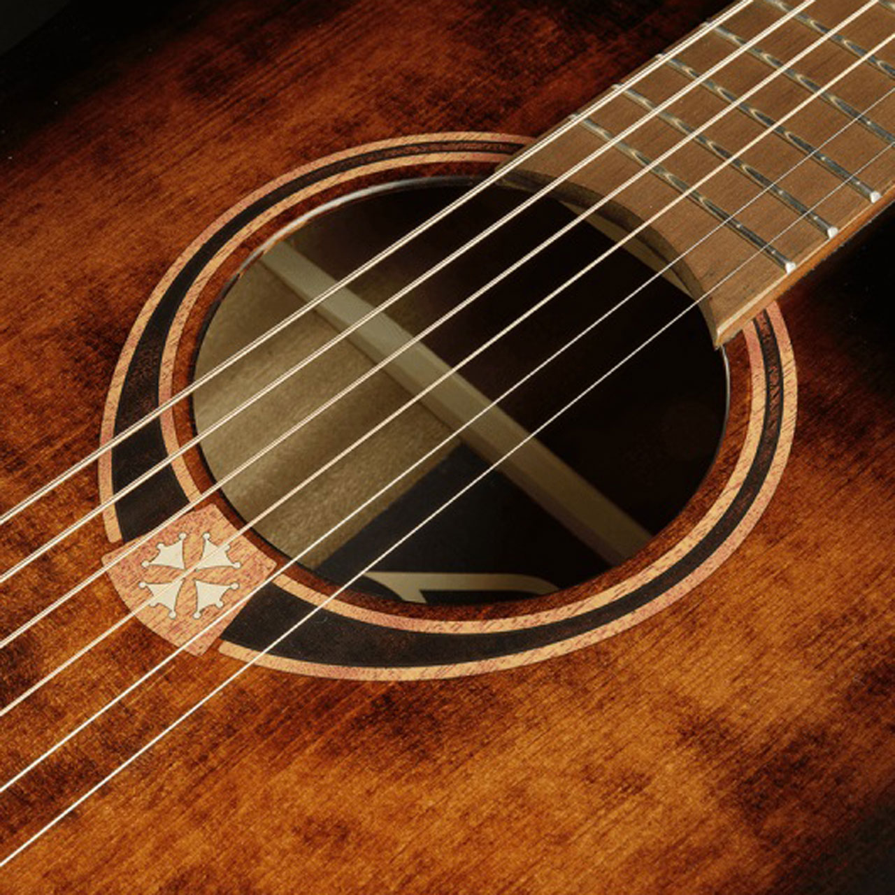 黒と茶色のサテン仕上げ (B&B) となるこの楽器は、LAG Guitarsの優雅さと革新性を体現する、視覚的にも印象的な楽器です。