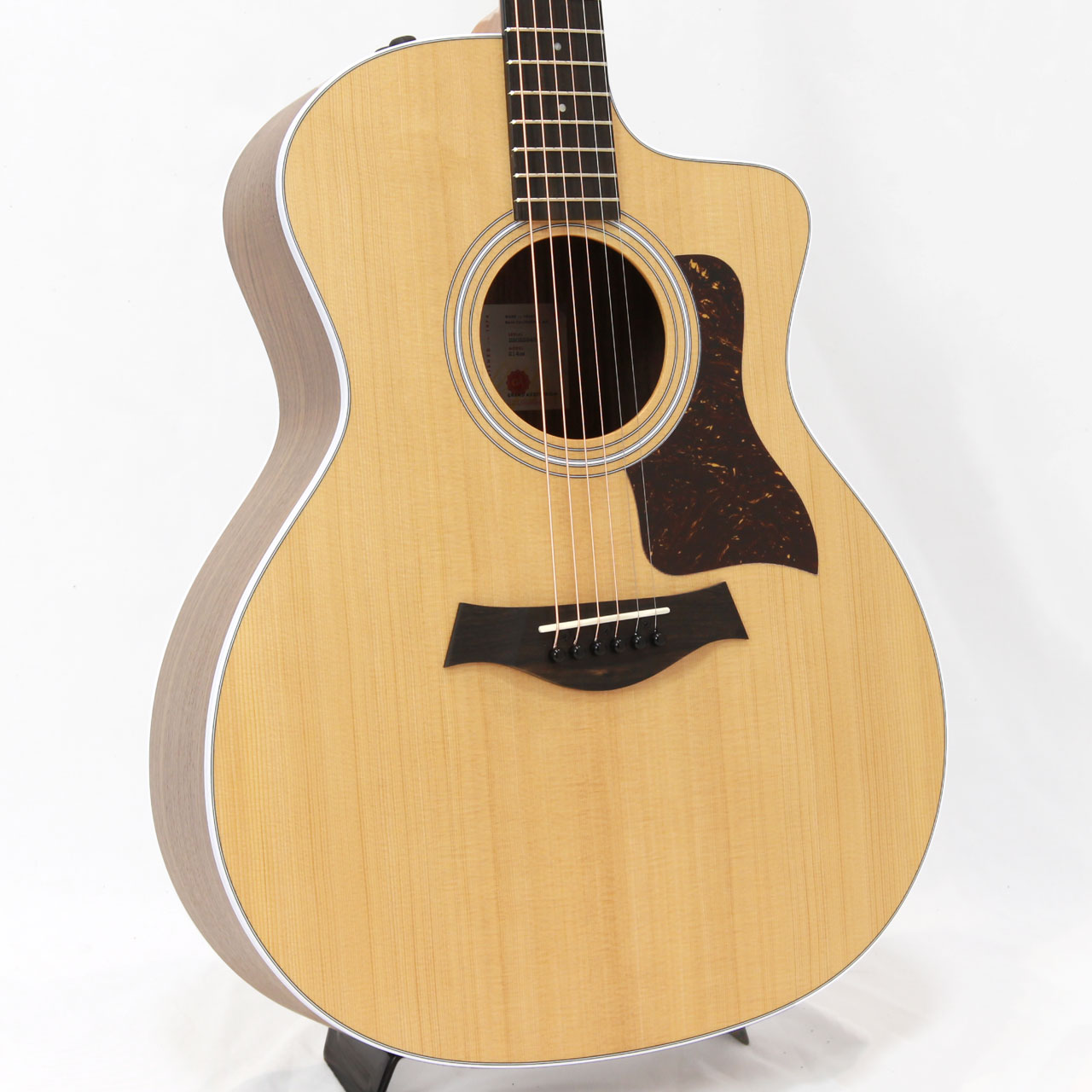 こちらは最新仕様で、トップ板がトリファイド加工されたスプルース単板、サイド&バック板がウォルナットに変更された新仕様の214ce。抜けが良く低域の広がりも豊かで、弾き語りにはピッタリなサウンドとなっております。