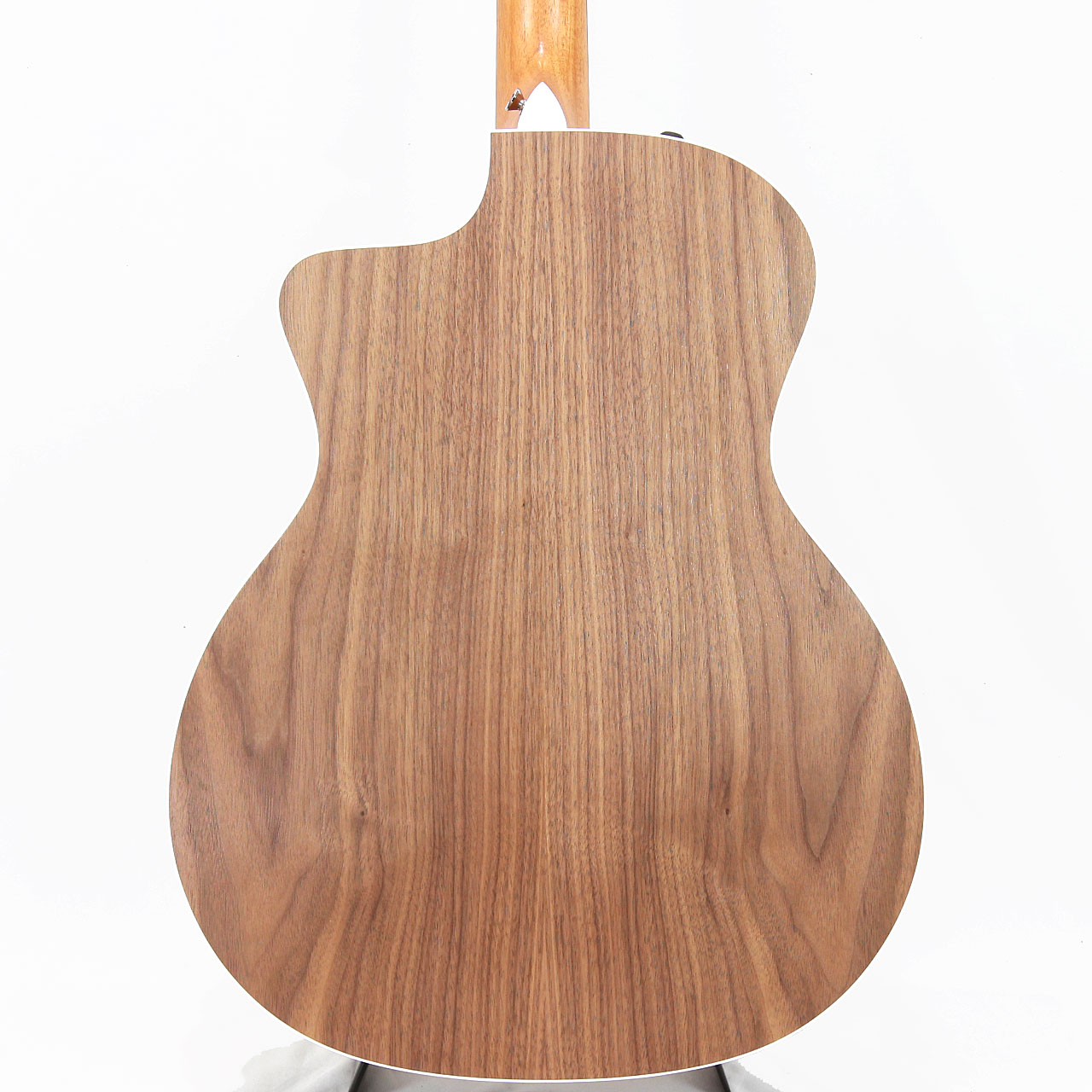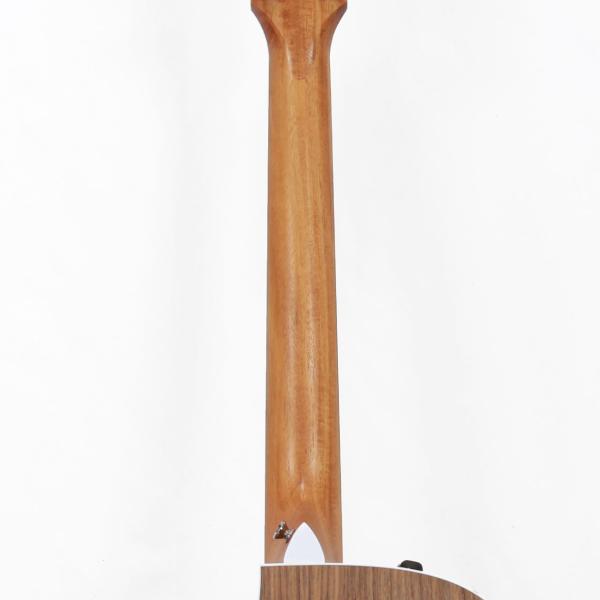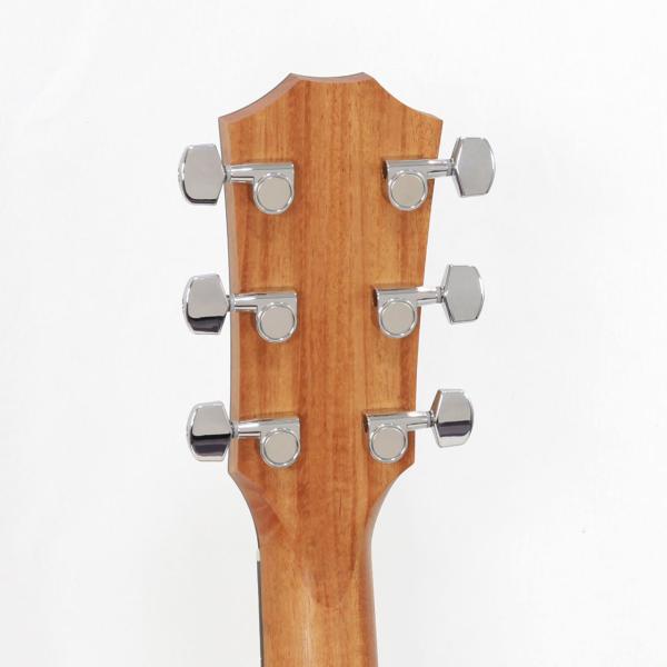 全体的な仕様としましては、トップ材はトリファイド・スプルース、サイド&バック材にレイヤード・ウォルナット、マホガニー材ネック、弾きやすさを追求した約43mmナット幅の細身のテイラー・ネック、エボニー材ブリッジ&指板、アメリカ製上位機種と同じES2ピックアップシステム搭載、専用ギグケース付属と本格的な音楽活動にも応えられる十分なスペックを兼ね揃えております。