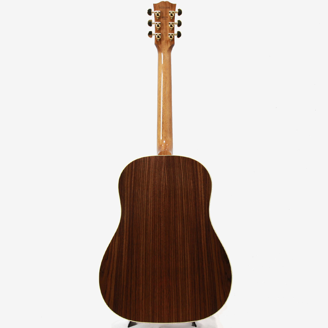 本器はJ-45スタンダードの新バージョンとして復活したローズウッド・バック&サイド仕様のJ-45 Standard Rosewood。世界中のギタリストに愛されるJ-45ならではの演奏性とサウンド特性を備えつつ、ローズウッド・ボディによる低域の豊かなレスポンスと倍音の煌びやかさが特徴的なモデルです。