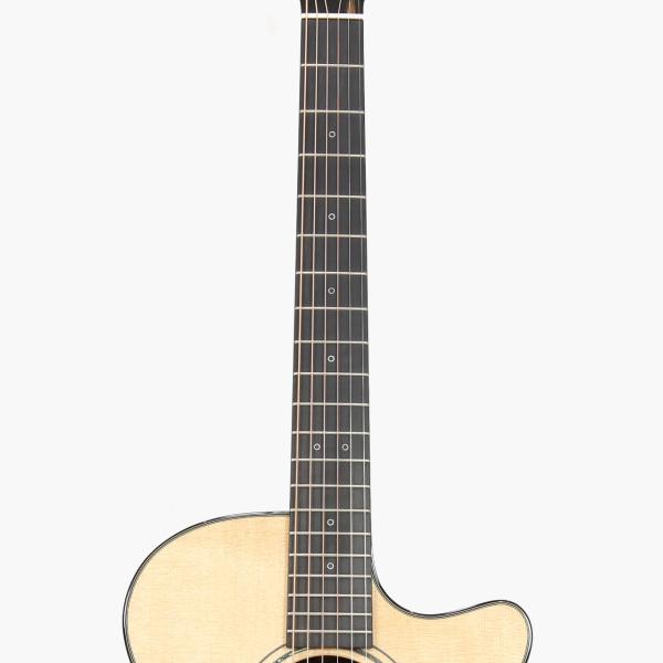 スプルースとローズウッドの王道の組み合わせによる、抜けの良い明るいクリアーな音色が魅力で、豊かな中低音と澄んだ高音が得られるモデルとなっております。音の分離感が非常に良く、程よく引き締まったローエンドから抜けの良い高音域までとてもバランス良く仕上がっております。