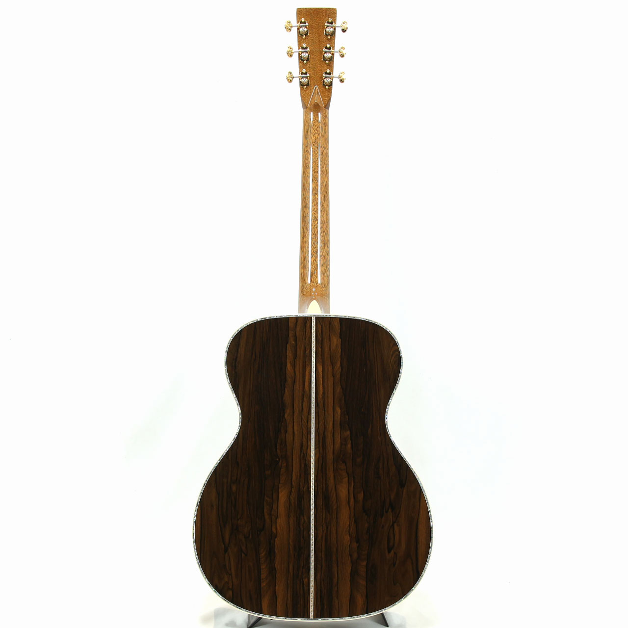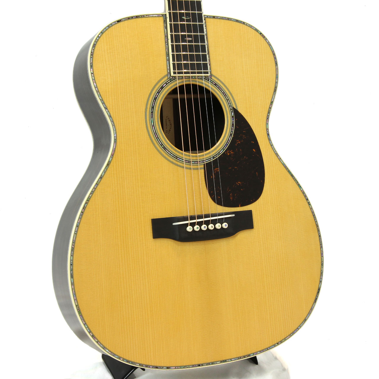 製作はマーティン社最高の技術によるハンドメイドでの組み上げとカスタムショップグレードと呼ばれる選定材が惜しみなく使用される、現代マーティンの最高峰”マーティンカスタムショップ”。膨大な敷地の僅かな一郭で、熟練の職人のみが配属を許される僅か20人程の精鋭集団。その仕上がりはもちろんスタンダードをあらゆる面で凌ぐ超一級品です。