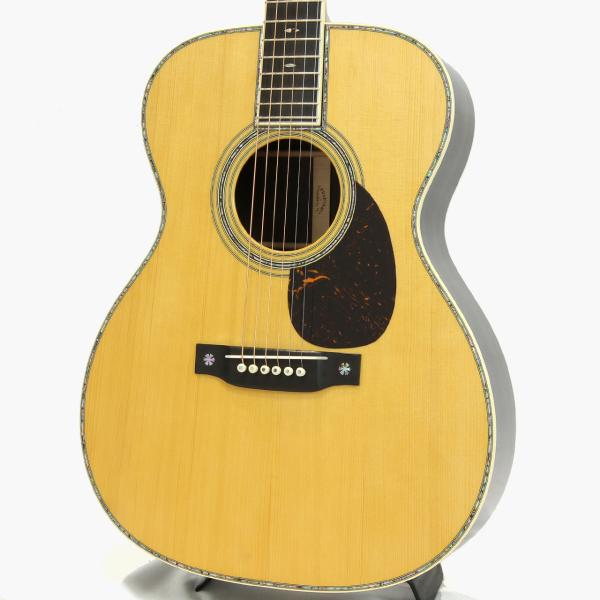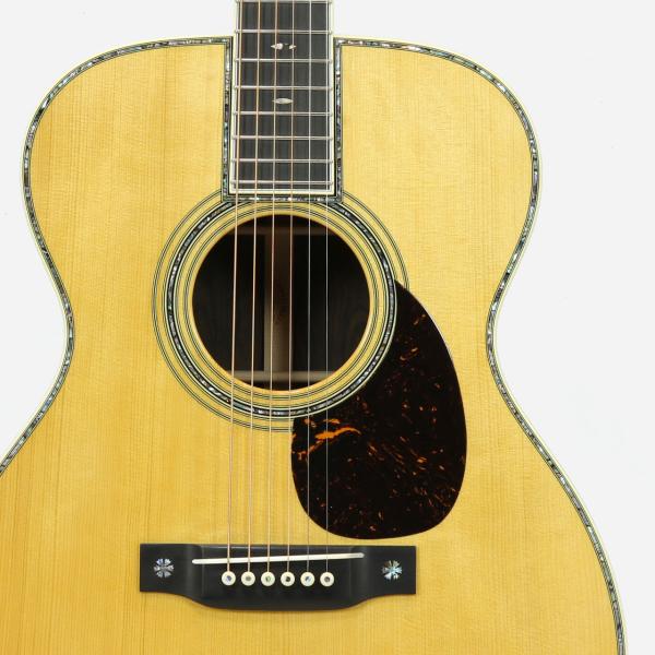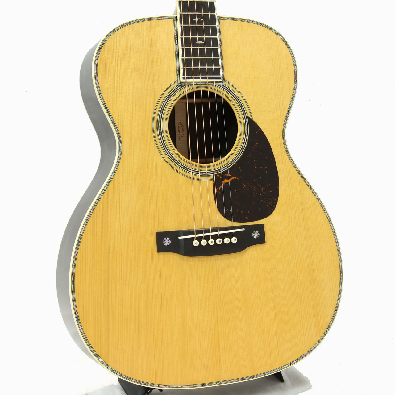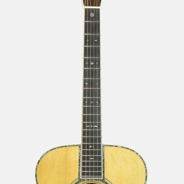 こちらは当店オリジナルカスタムのOM-42。特に当店ではOM42のカスタムショップモデルは問い合わせが多く、人気のカスタムとなります。カスタムベースはOM-42 Standardを選択しながらも、木材変更や木材グレード変更、スキャロップパターンの変更から縦ロゴ書体、ペグ、ピックガード形状やヘッドのシェイプまで、細部に渡ってフルカスタムさせて頂いております。