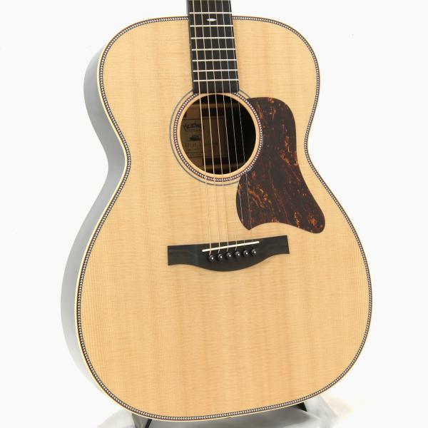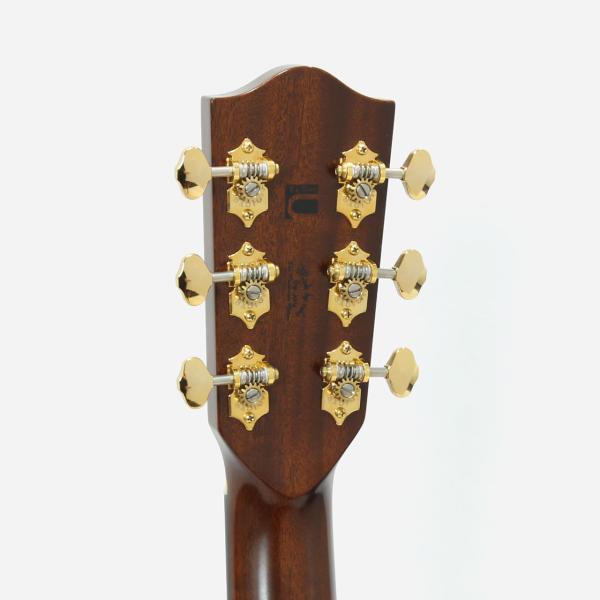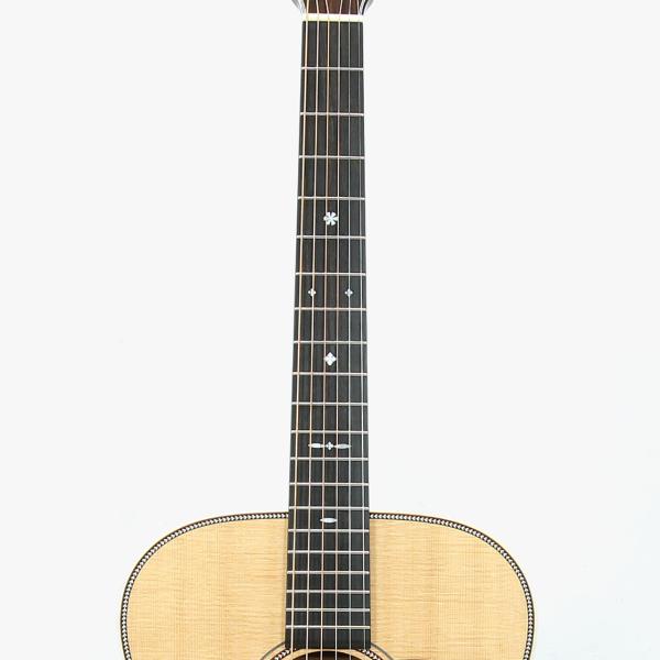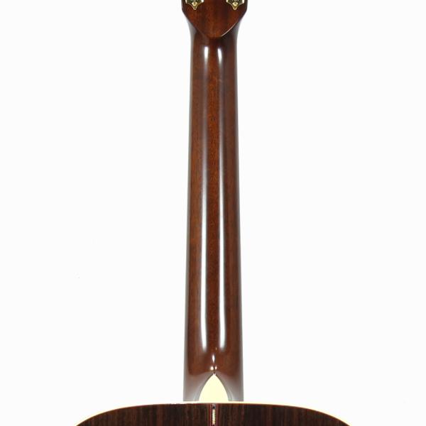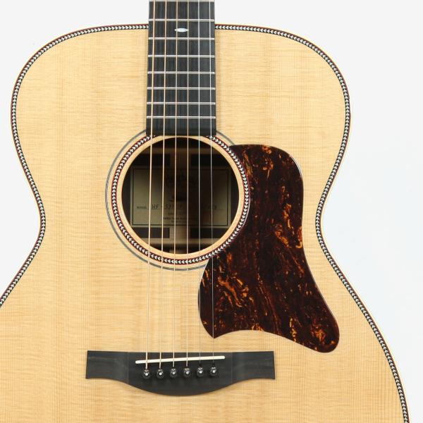トップ材はシトカスプルースの単板、サイド&バック材はインディアンローズウッドの単板、ネック材はアフリカンマホガニーの1ピース、エボニー材指板&ブリッジ、43mmナット幅に628mmスケールとコンパクトで抱えやすいギターです。
