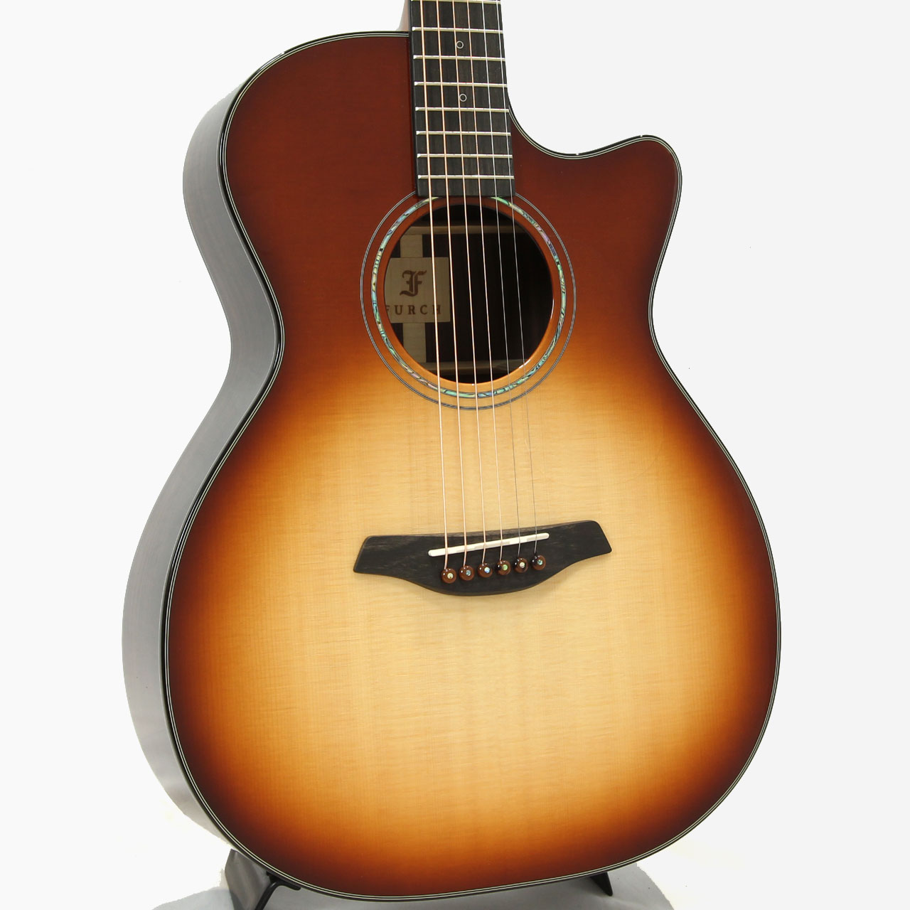 本器はOMならではの取り回しの良さと抱えた時のフィット感、カッタウェイによるハイポジションの演奏性を持つ人気のオーケストラモデルに、フォルヒならではの落ち着いた色合いのレッドバーストカラーが施されたモデル。