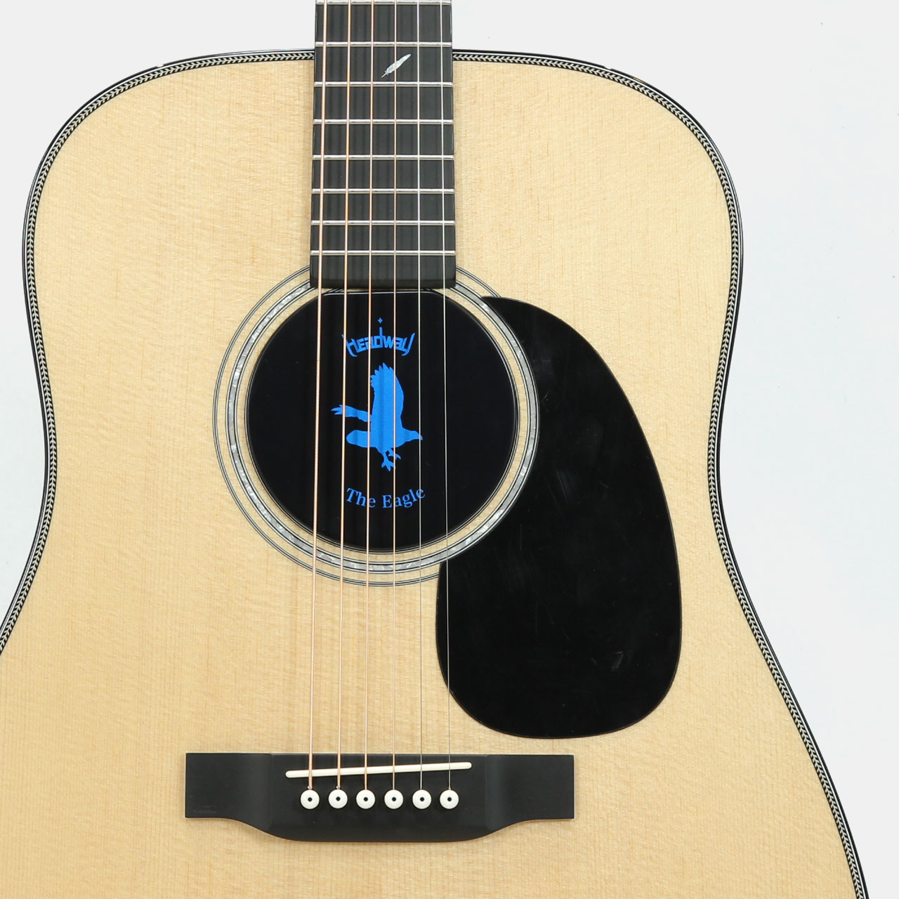 Headway発足時に百瀬が使用していたノーマルブレーシングを基礎とし、カスタムビルダー安井・降幡の両名が現代的なアレンジを取り入れ、再設計に挑んだ『Mid Point Shifted X Bracing』を初採用。 また、通常よりも力木の削りを浅くした『Shallow Scalloped』仕様はこれまでは百瀬のCustomShopモデルでのみ用いられていましたが、今回”The Eagle”にも初めて取り入れました。 1音1音の粒立ちが良いトーンでありながら低音響く箱鳴りを併せ持ち、それら全てを倍音で包んだようなバランスの良いサウンドはこれまでのHeadwayサウンドを踏襲しつつも、Headwayの新たな可能性を感じさせます。