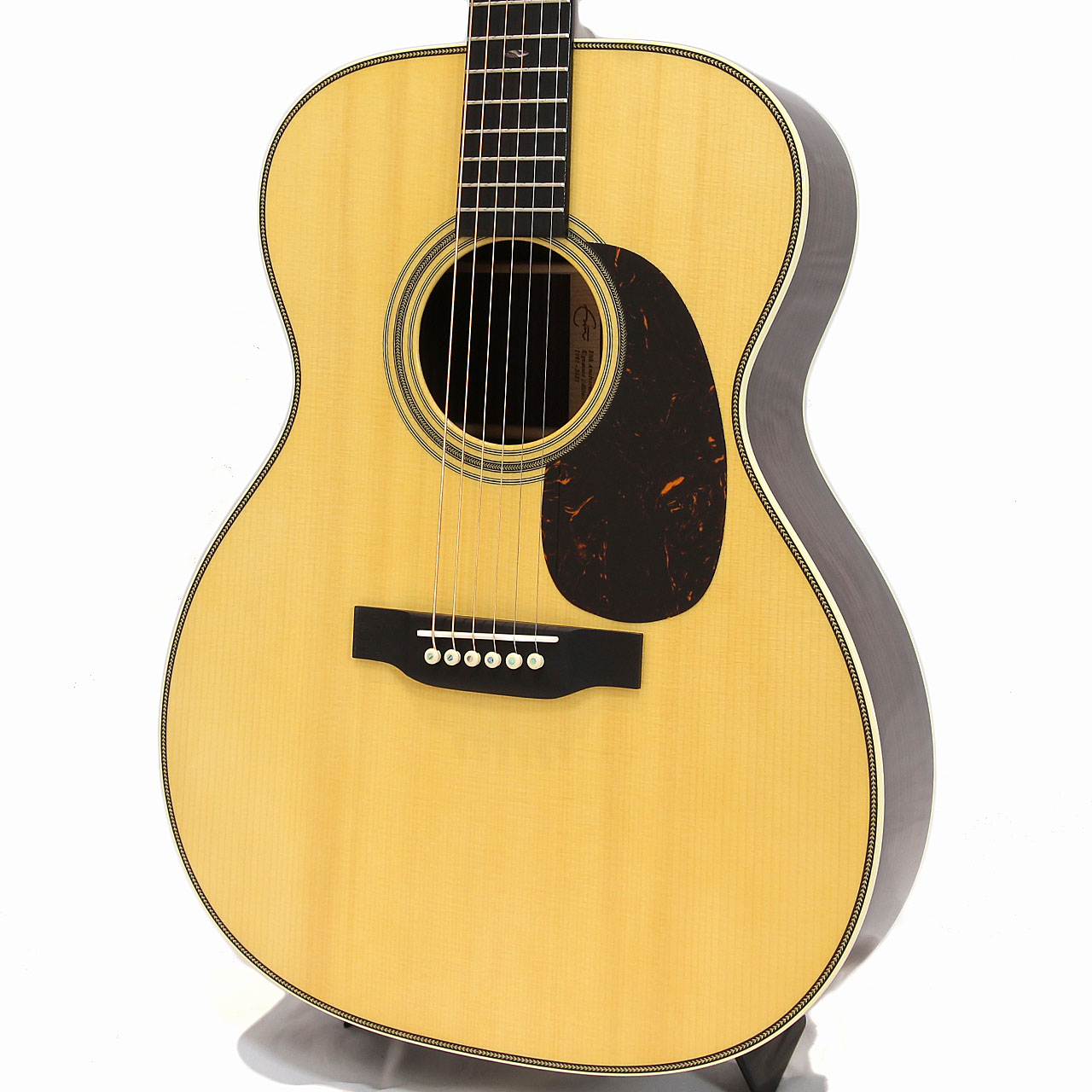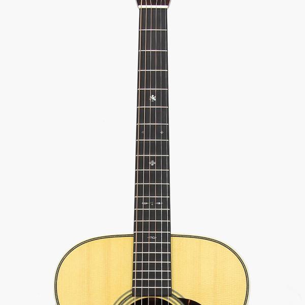 同じく1939年製の000-42からインスピレーションを受け、細身の42.9mmのナット幅を採用しており、通常の000-28ECに比べて快適な演奏を実現。また、指板インレイも5Fから始まるゴールデン・エラ・スタイルの42スノーフレーク・インレイが施されており、限定仕様感満載のルックスとなっています。エボニー指板は、クラシカルな美観とプレイアビリティを両立しています。