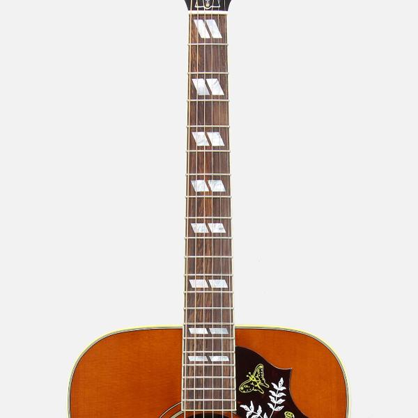 本器は60年代のスタイルを踏襲した「Hummingbird Original」をベースに、特有のサウンドと容易な弦高調整機能を可能にするアジャスタブルサドルを搭載、且つL.R.Baggs社のLyricピックアップを取り付けた当店オーダーのDealer Selectモデル。