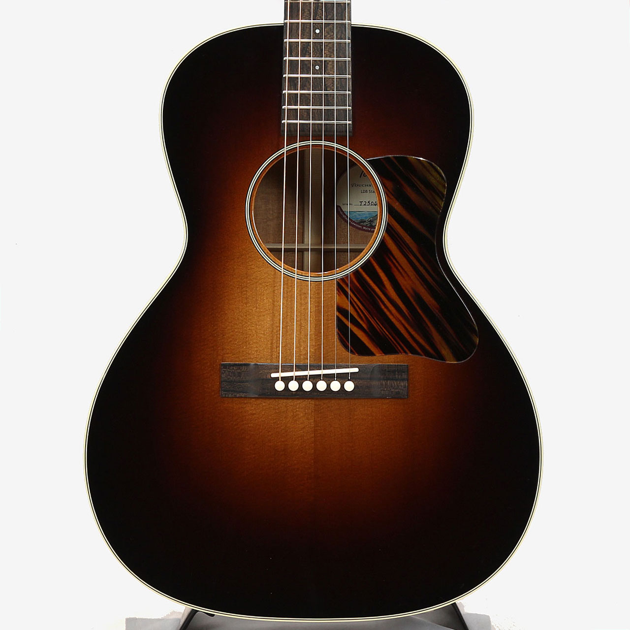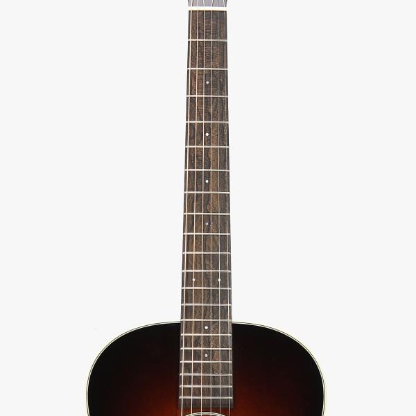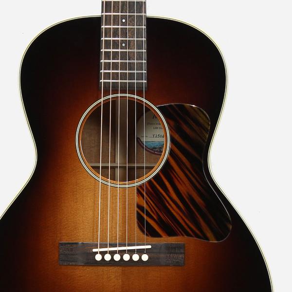 本器は、サウンドの要となるトップ板とブレーシングの成形をBourgeois工房で、最終の組み上げをEastman工場で行うTouchstone Seriesの新製品L-DBO The Standard。GIBSON Lボディをベースとしておりますがイメージにあるチープさは微塵もなく、マホガニーという材の持つクリアさや明るさ、温かみを存分に味わっていただける素晴らしい仕上がりの1本となっています。