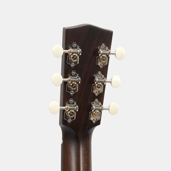 トップ材にはトリファイド加工を施したシトカスプルース材、サイド&バック材は上質なマホガニー材が使用されております。その他、マホガニー材ネック、ジリコテ材指板&ブリッジ、43.65mmナット幅、635mmスケール、シャーラー社のGrand Tuneペグ(アイボロイド柄ボタン)と、妥協のないハイスペックな仕様となります。