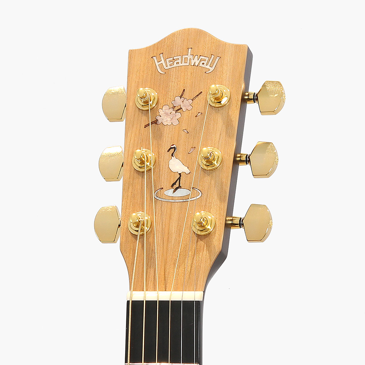 こちらは2014年から続くHeadwayの人気ラインナップ「桜ギター」の10周年を記念したモデル。カッタウェイを備えたHCシェイプに10周年を記念した鶴をモチーフとしたヘッドインレイ、裏には10周年記念のアニバーサリーロゴが刻印されています。