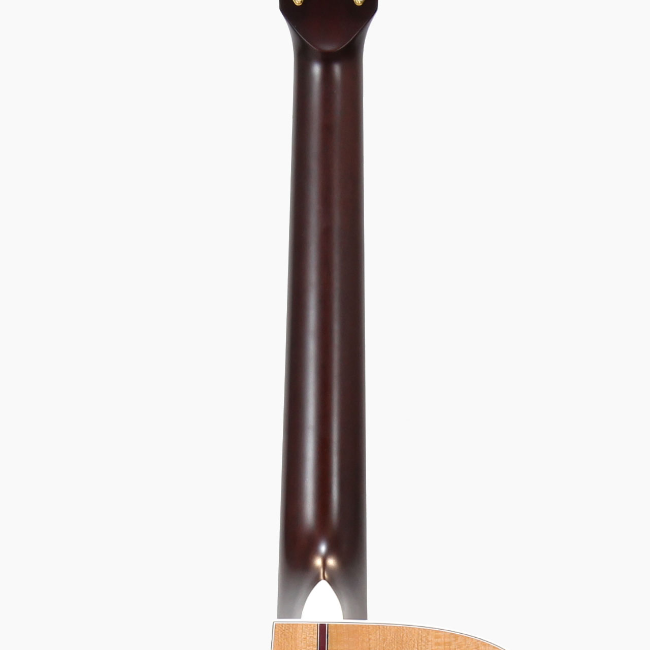 シトカスプルーストップ、サイド&バックにはお馴染みのヤマザクラ、マホガニーネック、リッチライト指板&ブリッジ、ゴトーSG301ペグ、645mmスケール、43mmナット。