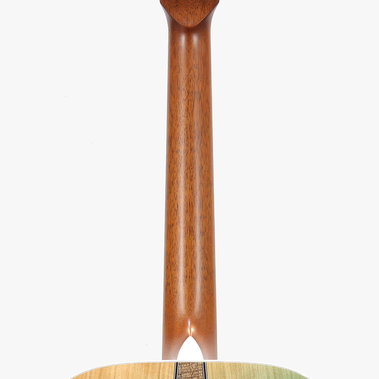 桜材の中では白い木地と縦方向にすっきりと通った美しい木目が魅力の良質な宮崎県産山桜をボディサイド&バック材に採用しました。バックのセンターピースには宮崎の名産としても知られるマンゴーの木材(※産地は宮崎県ではありません)を使用し、南国らしい雰囲気を演出。比較的柔らかく温かみのある音質を持つマンゴー材が、桜材の持つ繊細な響きに優しいニュアンスを加え、独特のサウンドキャラクターを生み出しています。