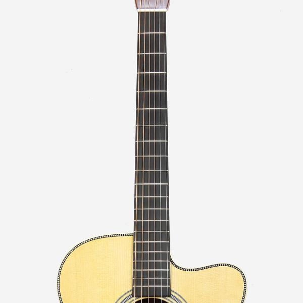 カスタムベースは名器として今でも人気のOMC-28M LJを意識したOMのカッタウェイ仕様をチョイス。現代的なモダンな要素を追加した演奏性に優れたオールマイティなモデルに仕上げさせて頂きました。