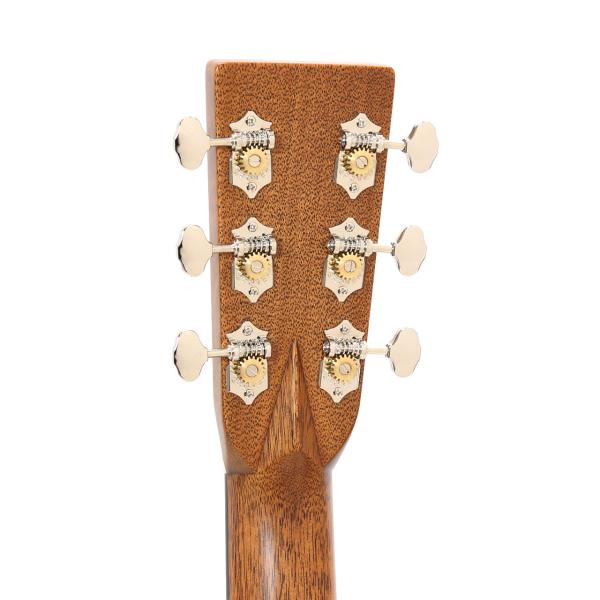 トップ材はカスタムショップのクラフトマンに選定して頂いたアディロンダック・スプルース材を使用。非常に目の細やかで美しい材を選んでくれました。アディロンダック・スプルースはMartinの代名詞ともいえる高級木材で、音に厚みがあり、パワー溢れるトルクフルなトーンが最大の魅力。柔らかめなマーチンのサウンドに、音の厚みと力強さがプラスされますので、やはりマーチンにはアディロントップが一番しっくりくるという方は多いでしょう。