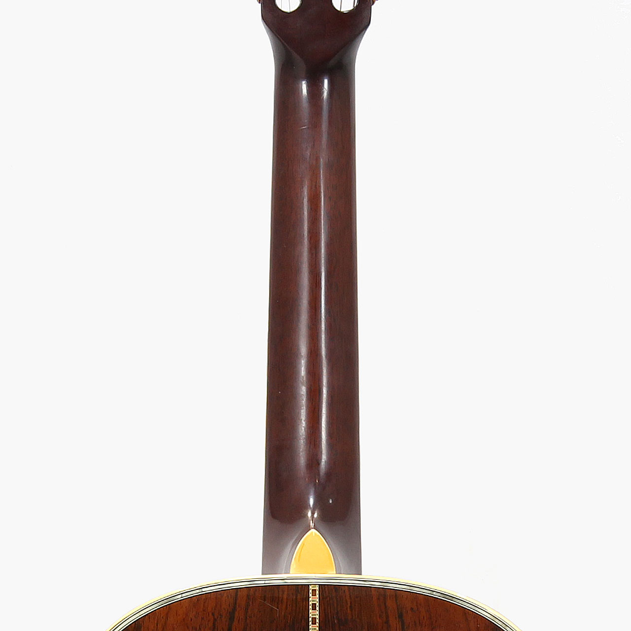 ナット幅はオリジナルを模した約47mmで、ネックシェイプは三角ネック。指板とブリッジはエボニー材で、ブリッジ形状はピラミッドスタイルです。指板インレイは45スタイルのスノーフレイク、ヘッドにはフラワーポッドと見た目も豪華な仕様です。