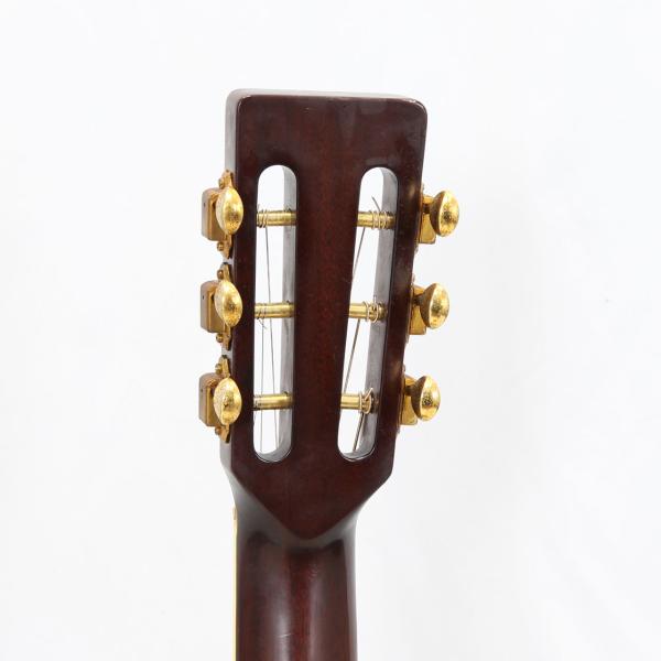 スタイルはMartinの45仕様の装飾に、スロテッドヘッド&12Fジョイントを採用したコンパクトなモデル。トップ材はスプルース単板、サイドバック材には合板ですがハカランダを用いた高級感のあるスペックとなっております。