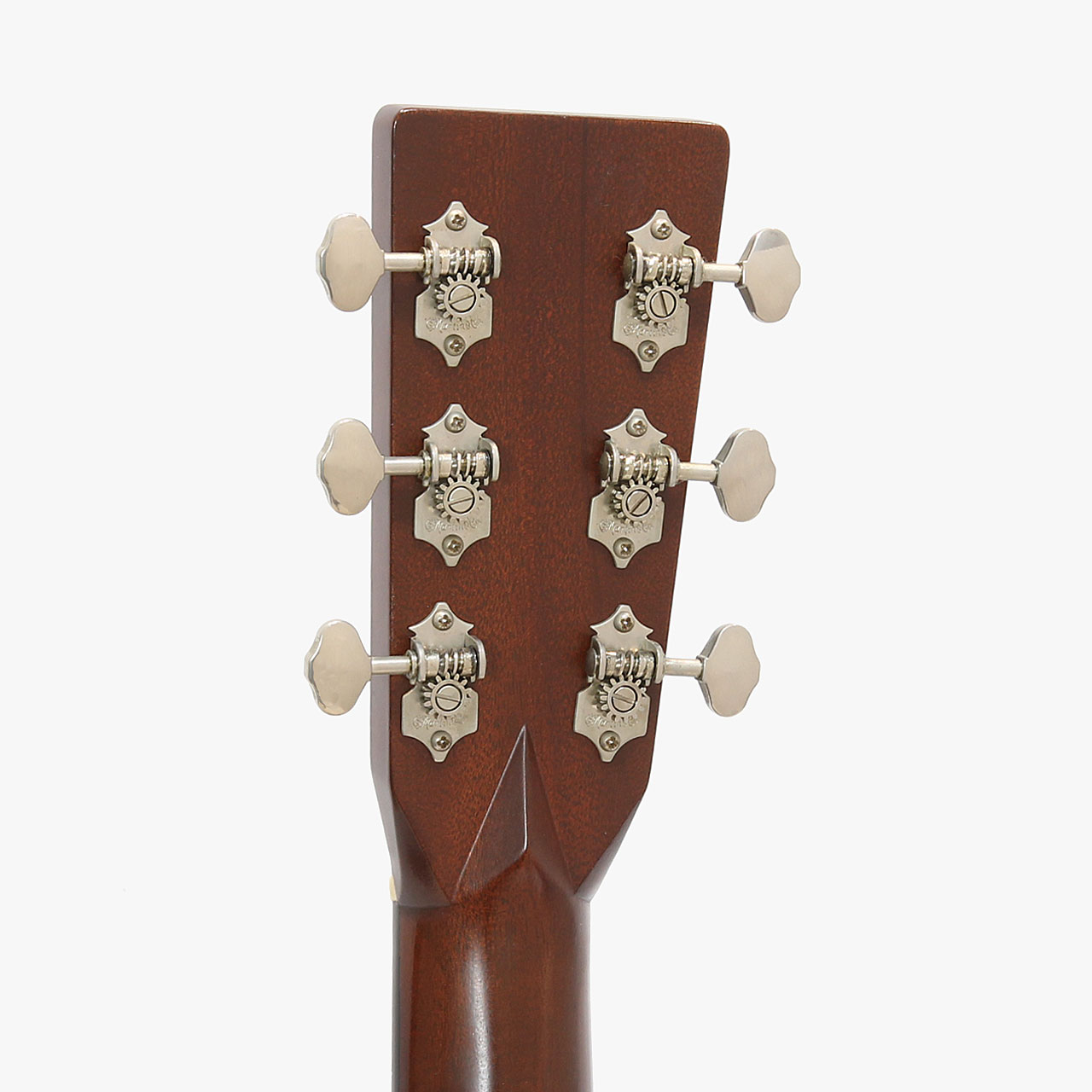 スペックですが、トップ材はシトカスプルース、サイド&バック材はインディアンローズウッド、セレクトハードウッド材ネック、エボニー材指板&ブリッジ、約43mmナット幅のMod Vネック、645mmスケール、ヘリンボーントリム、アイボロイド材バインディング、ジグザグバックストリップ、ドロップインタイプのロングサドルという内容です。